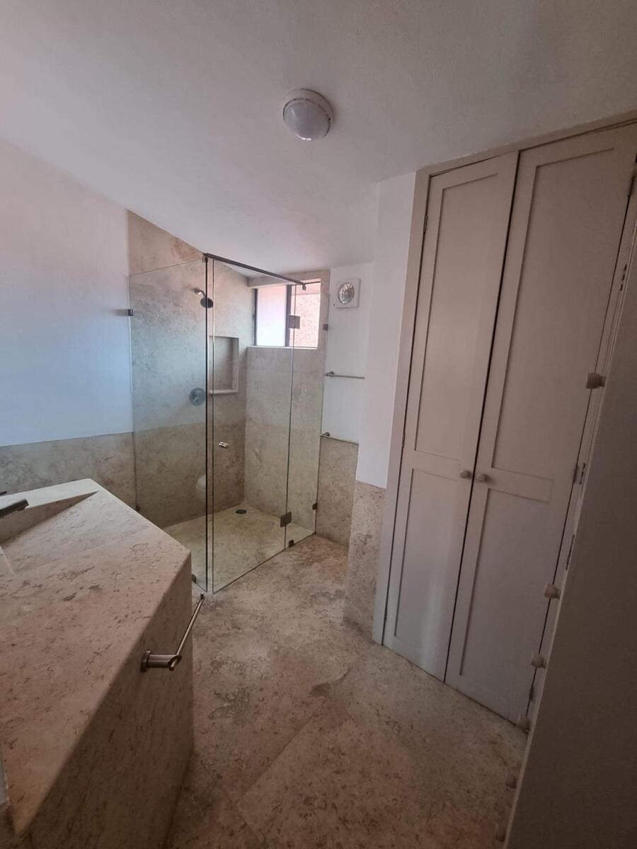 Baaños de mármol y cancelería de cristal , persianas de madera y cocina en granito, pisos de la casa madera de bambú