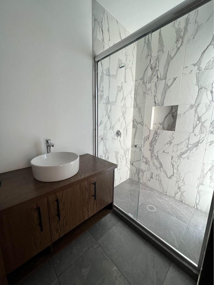 • Planta Baja: Sala, comedor, cocina abierta con isla, baño de visitas, una recámara con vestidor y baño completo, jardín y cochera.