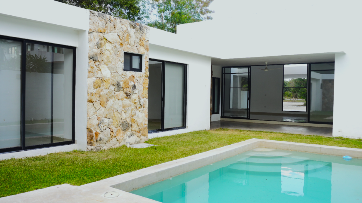 Ubicada en el exclusivo fraccionamiento La Rejoyada al norte de Merida, casa de un solo nivel frente a uno de los parques del fraccionamiento.