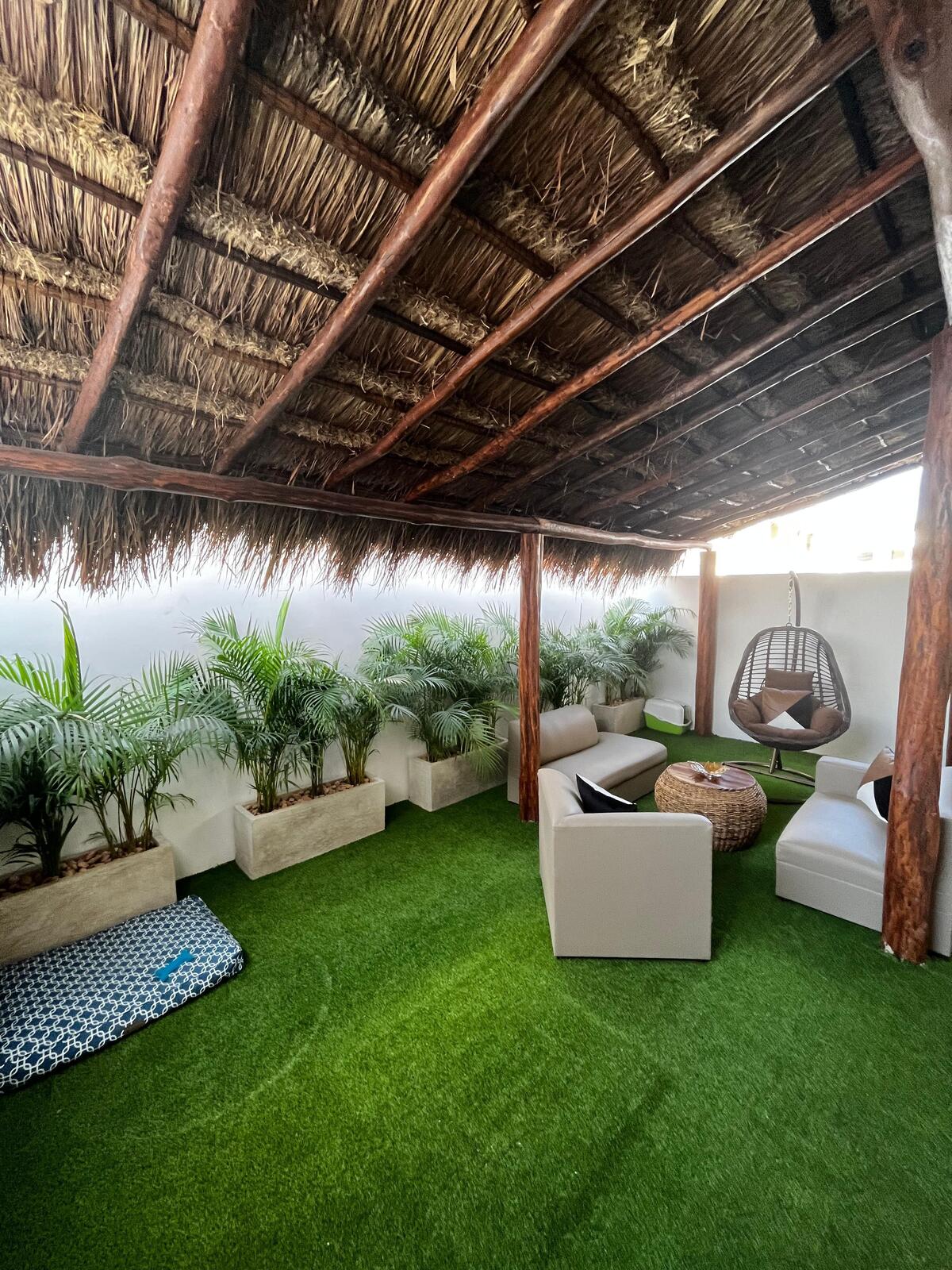 - **Terraza:** Con pasto artificial y palapa