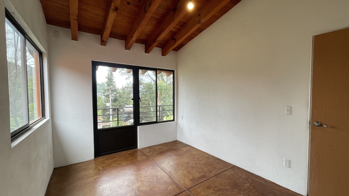 Planta Baja: sala con ½ baño, cocina, comedor, cuarto de servicio con baño, área de lavado y tendido. Planta Alta: 2 recámaras, 2 baños, sala de T.V. ó estudio con balcón. Seguridad las 24 horas. Adicional se paga el mantenimiento de jardín y vigilancia.