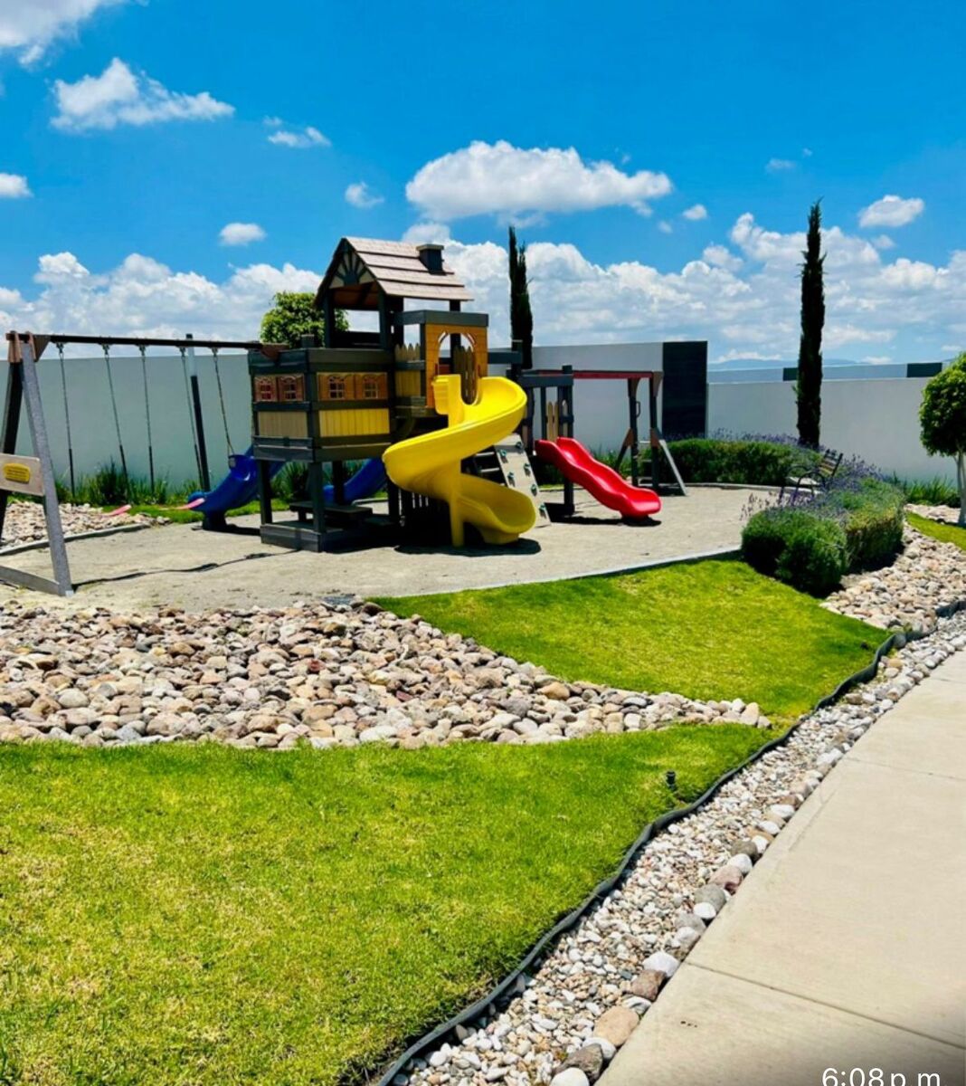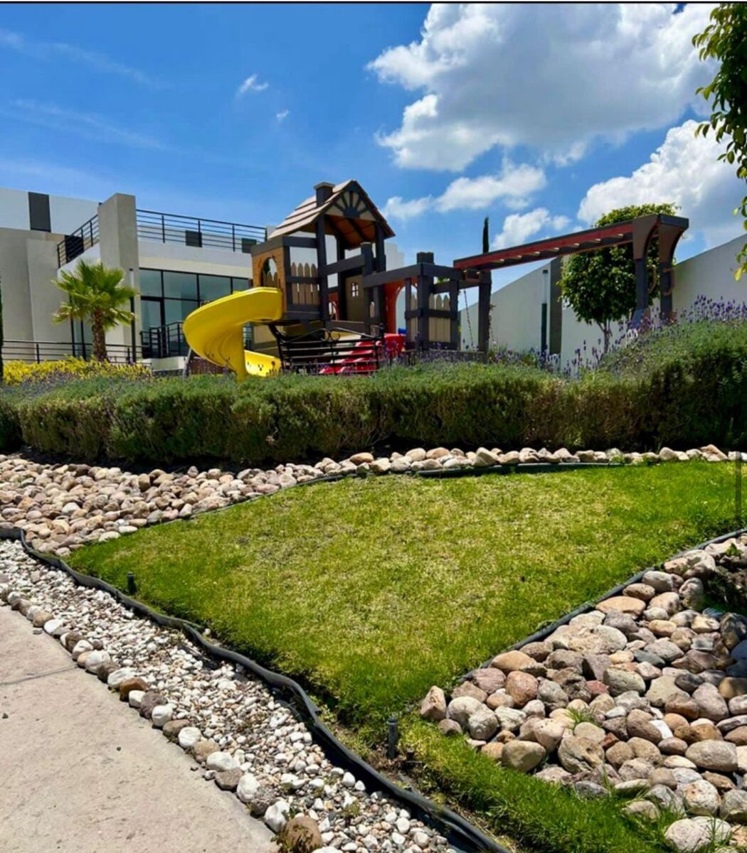 El fraccionamiento cuenta con acceso controlado, doble filtro de seguridad y amenidades comunes como alberca, áreas verdes y casa club.