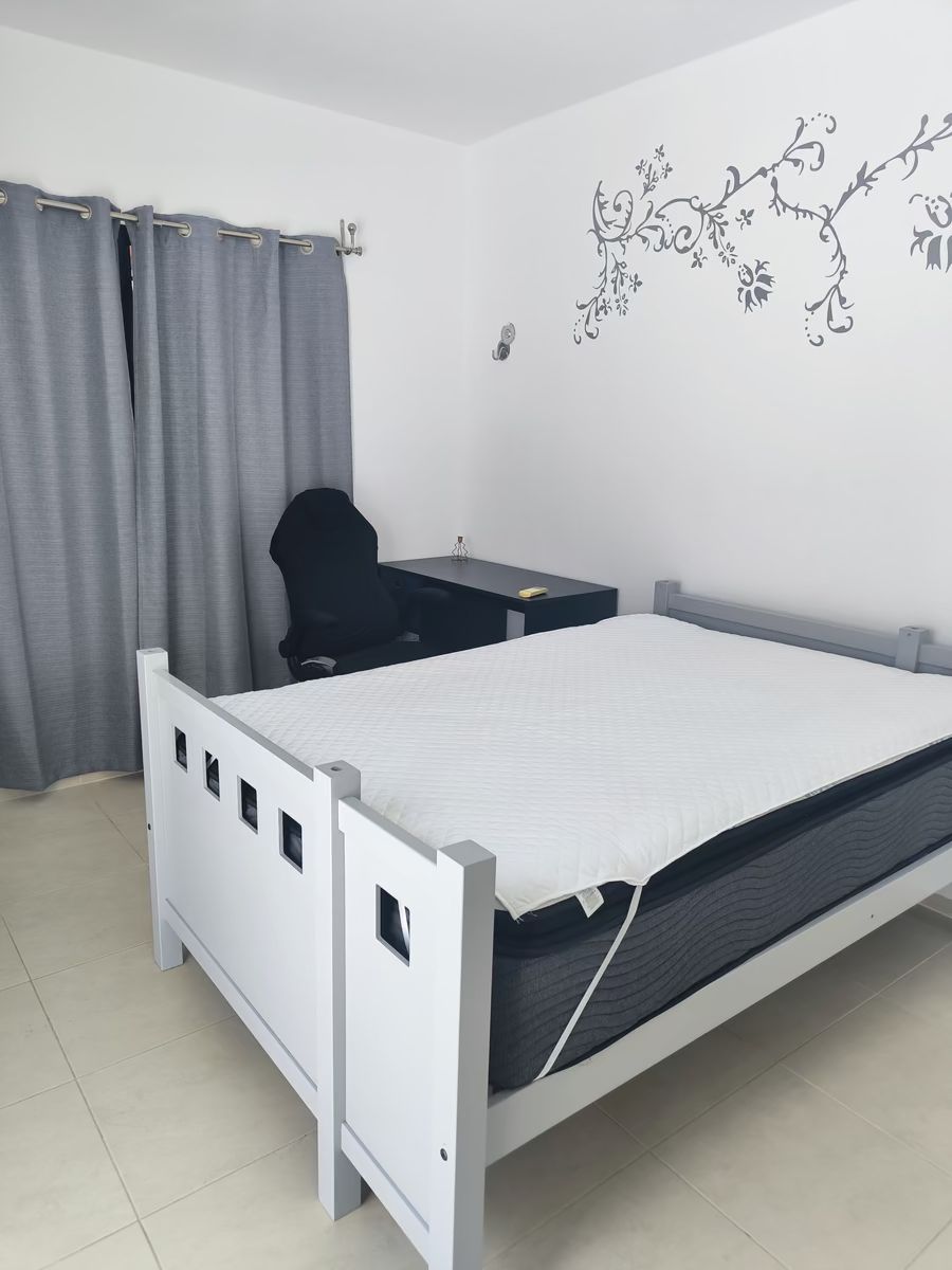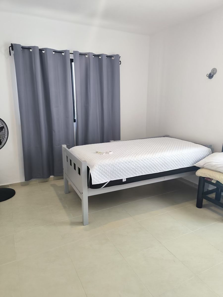 * 1 Habitación secundaria con cama, clima, cortinas, clima, abanico
