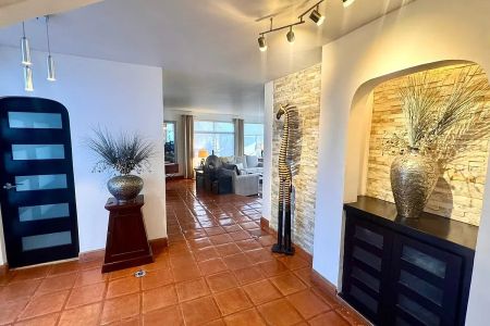 Con 497 m² de terreno y 452 m² de construcción, la propiedad combina arquitectura con carácter, materiales cálidos y espacios diseñados para disfrutarse. Los pisos de barro, detalles en madera, piedra y los grandes ventanales permiten que la luz natural y la vista al mar formen parte del interior.