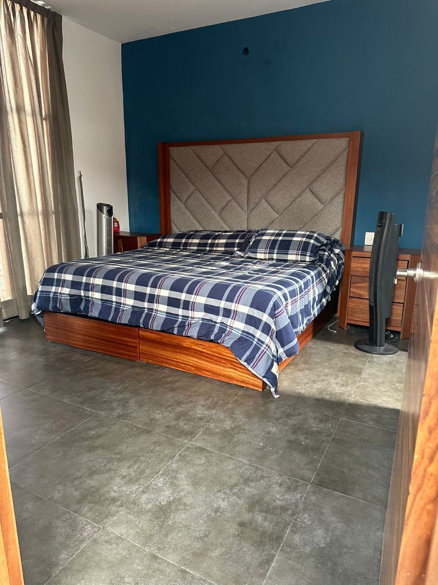 3 habitaciones (una con aire acondicionado) con cortinas y persianas