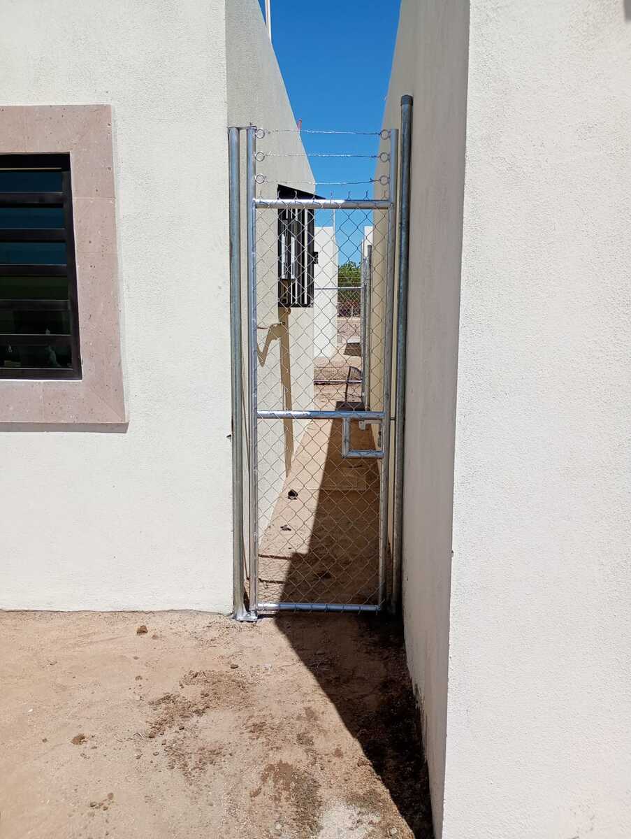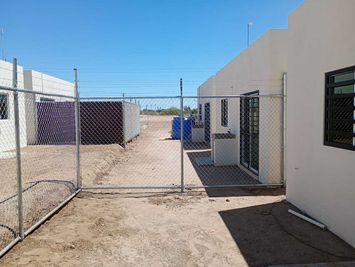 Excelente casa en Renta, Sin Amueblar, de 55.00 m2 de construcción y 140.00 m2 de terreno. La Casa está ubicada en un fraccionamiento con calles pavimentadas con concreto hidráulico, es de 2 recámaras, cada una con minisplit de 1 ton, totalmente nuevos, con cocina integral sin electrodomésticos, 1 baño completo, tiene espacio para 2 autos, totalmente enrejada en puertas y ventanas. La casa está cercada con malla ciclónica en la parte trasera y en el pasillo lateral; cuenta con un tinaco de 1,100 litros con bomba automática, como cisterna.