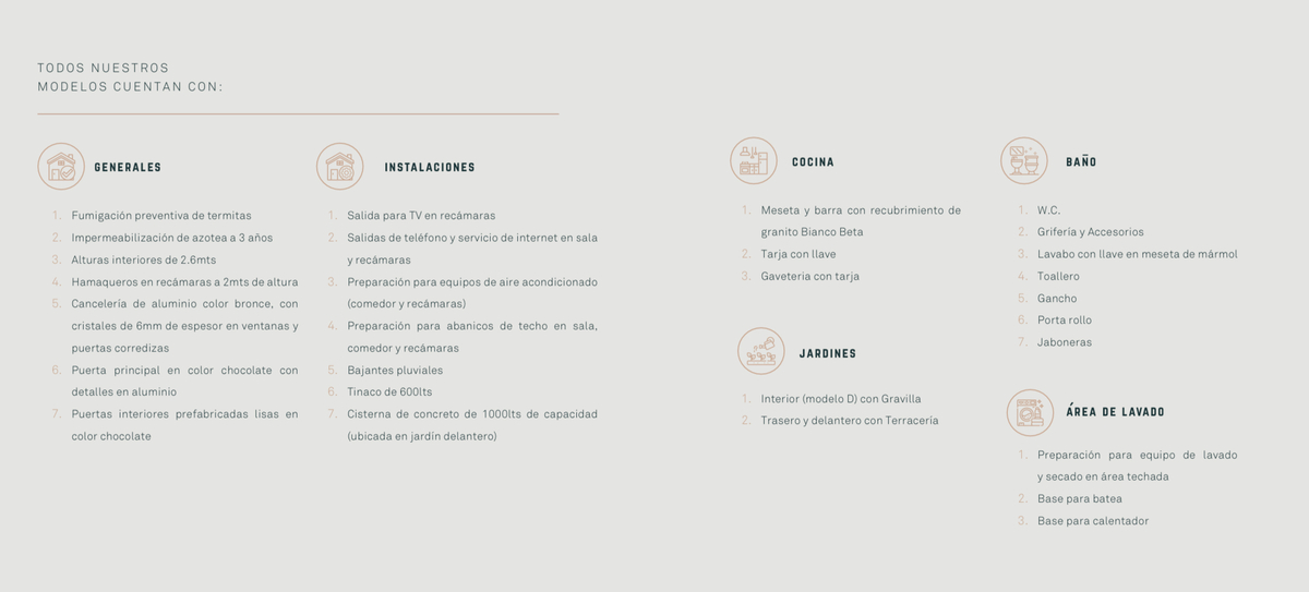 • Seguridad y confort: caseta con vigilancia 24/7, control de acceso, barda perimetral, cerca eléctrica, vialidades de concreto hidráulico, instalaciones subterráneas y planta de tratamiento.