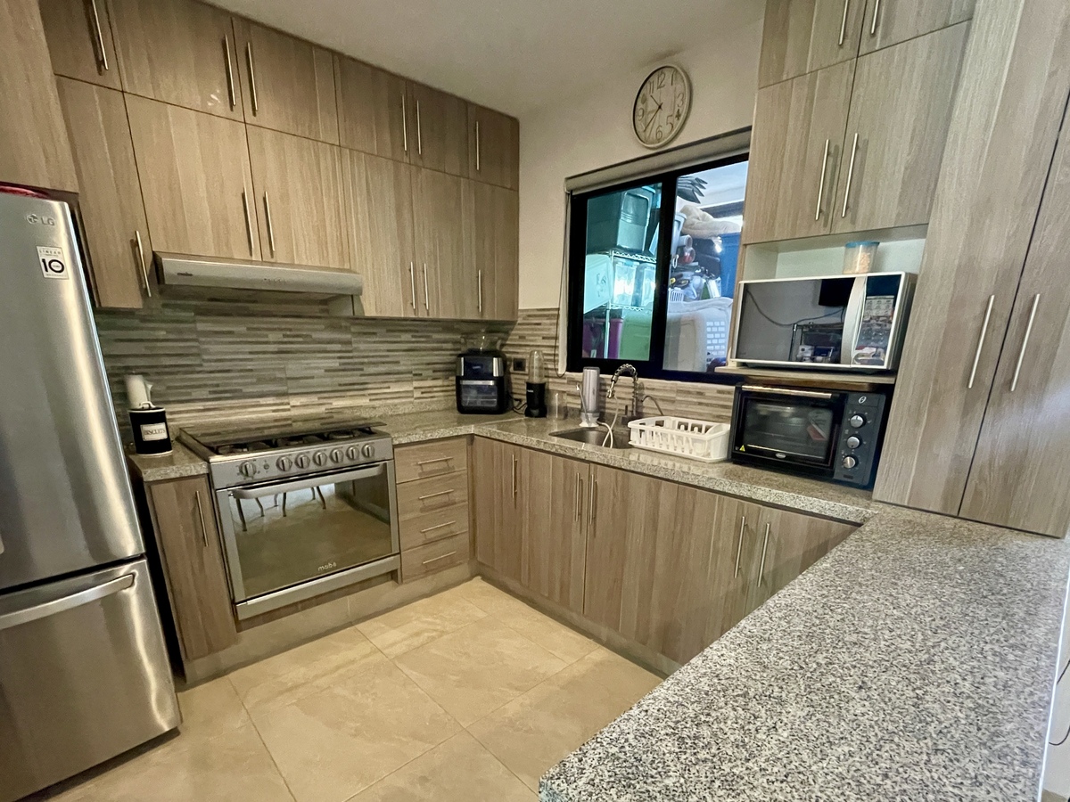 •⁠ ⁠Cocina equipada con barra de granito, estufa, campana y alacenas adicionales