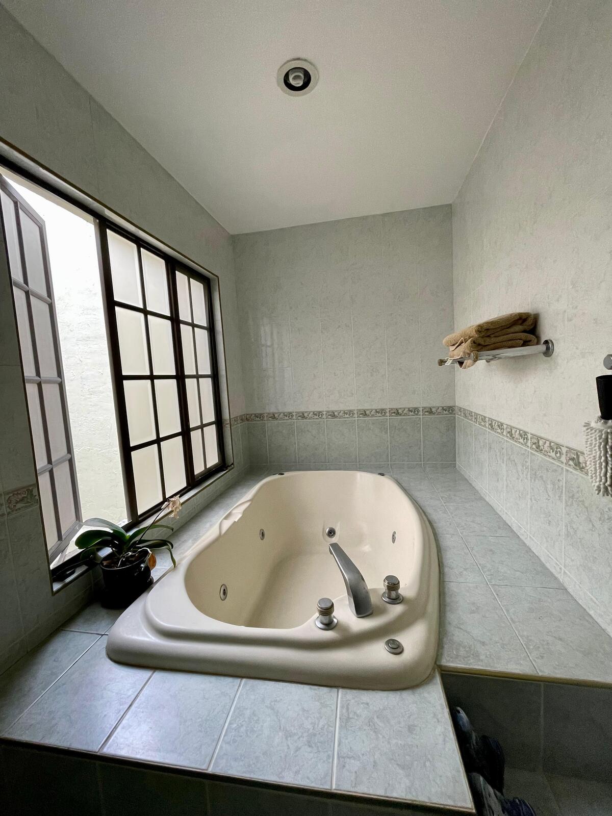 Excelente casa dentro de Valle Real en Avenida muy arbolada, cuenta con cochera para 4 autos, cuarto de servicio con baño y lavandería, amplia cocina recientemente remodelada, estudio, sala, comedor, terraza con baño, sala de TV, habitación con baño y closet y otra habitación con baño y vestidor, la recamara principal con baño, jacuzzi y amplio vestidor
