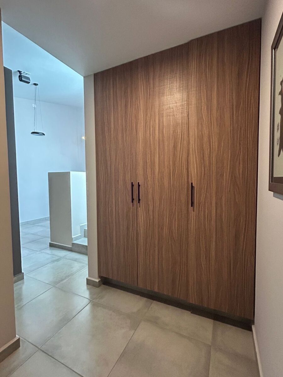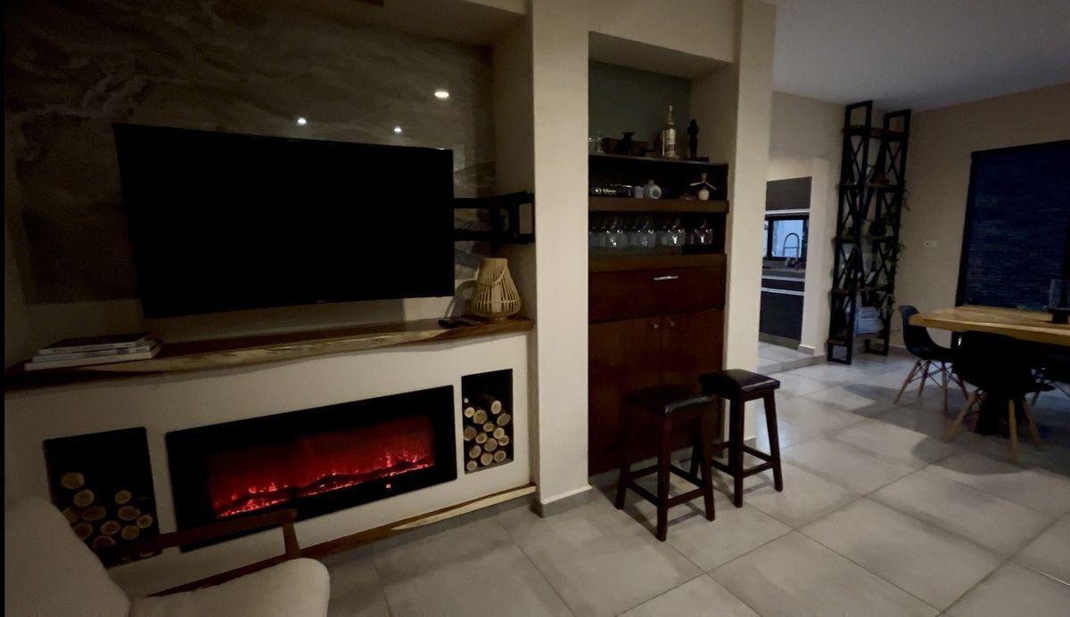 La casa cuenta con luces indirectas y de cortesía, lámparas y muebles empotrados