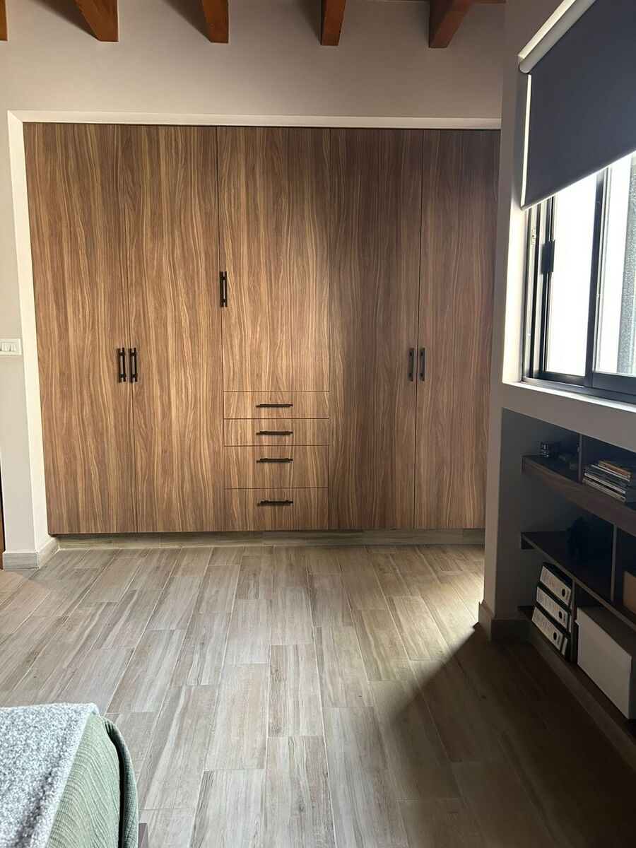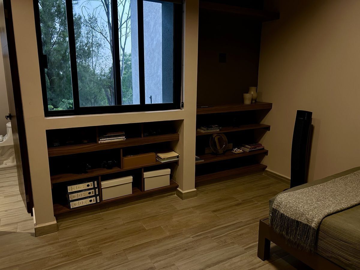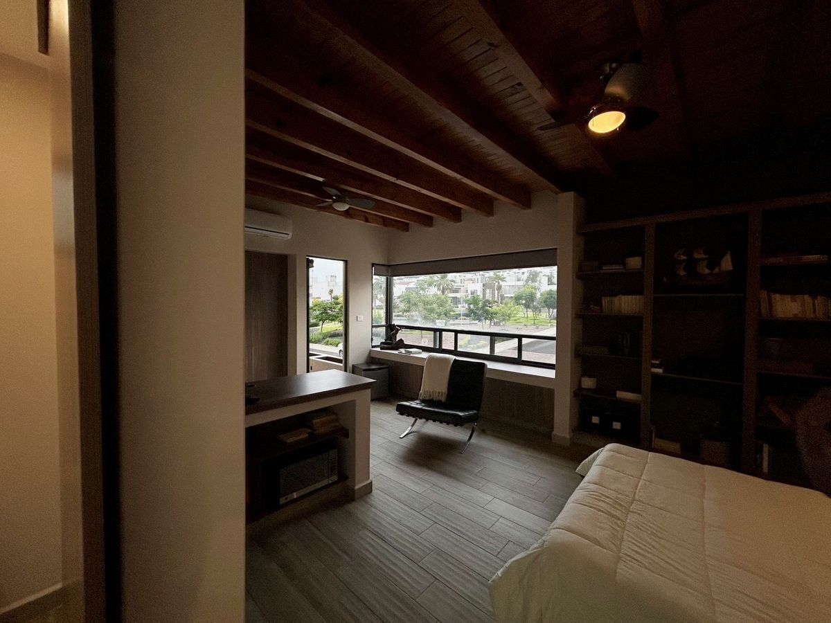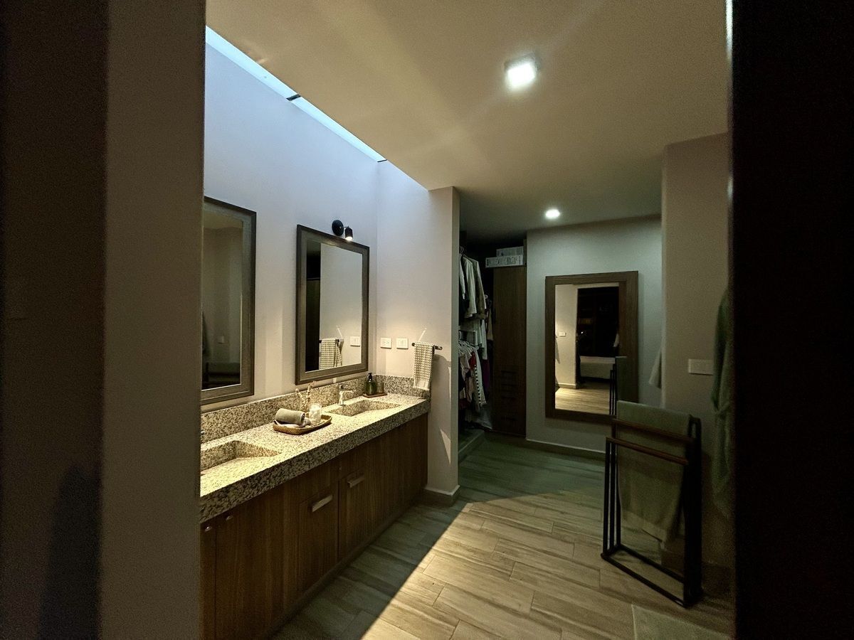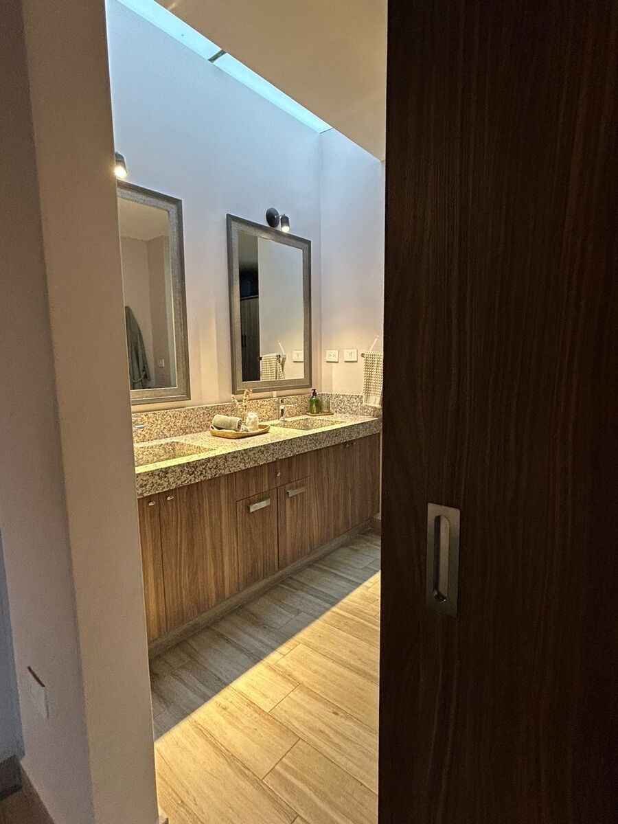 Área flexible con mueble empotrado, habitación uno con muebles empotrados, vestidor y baño, habitación dos con clóset y baño completo con vista a la reserva