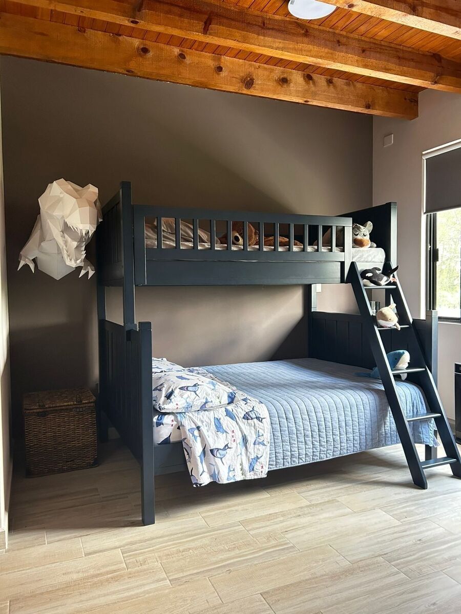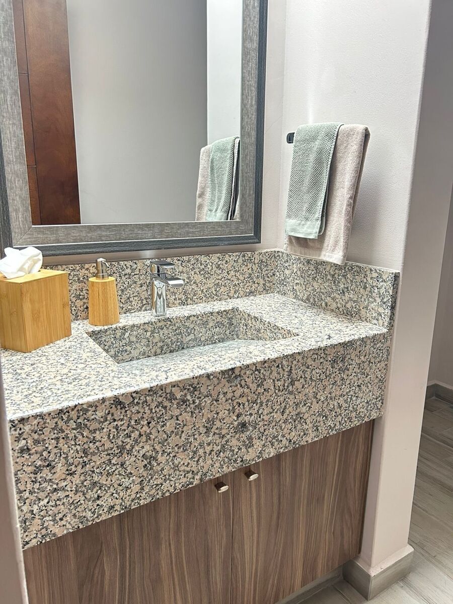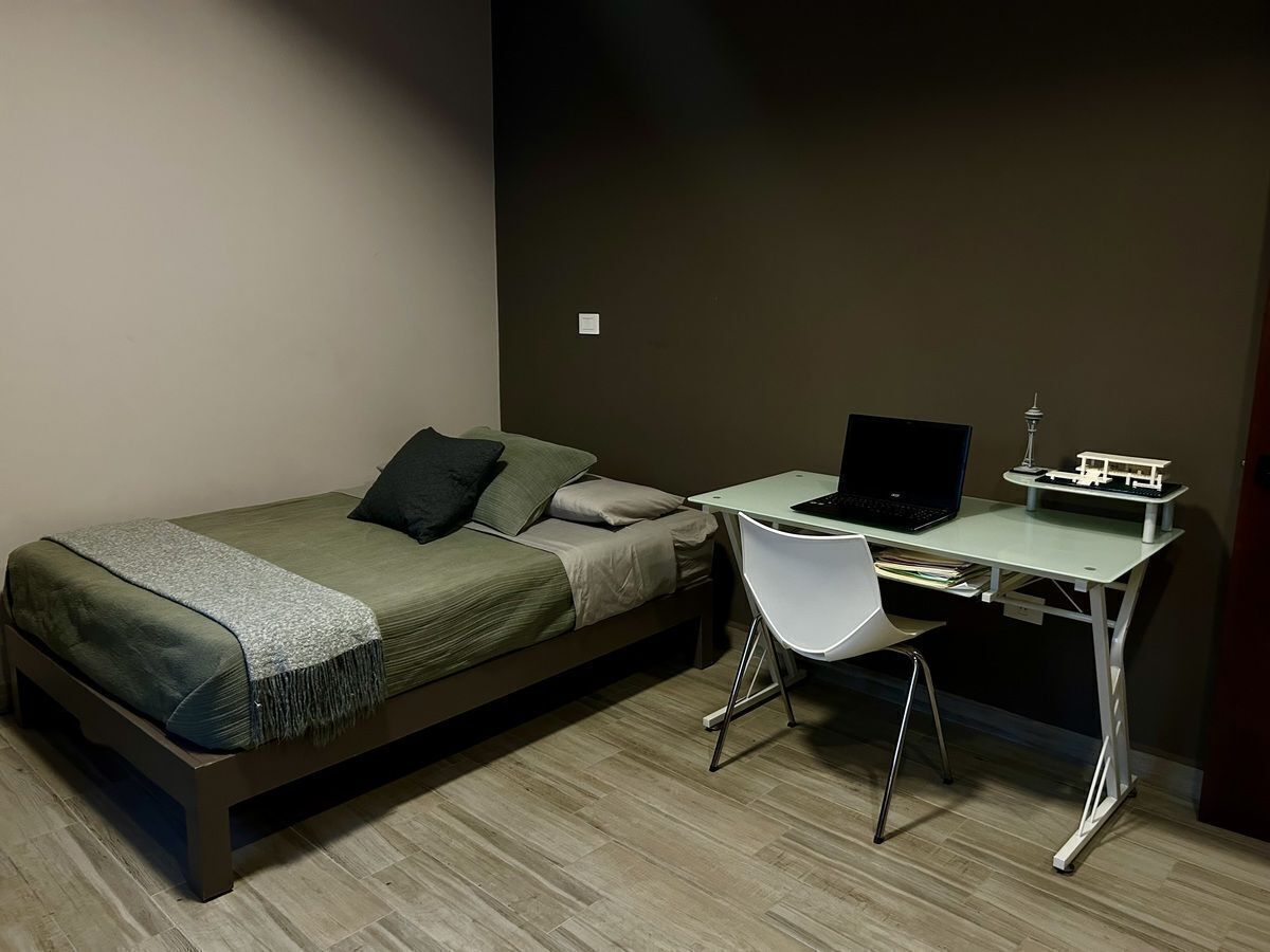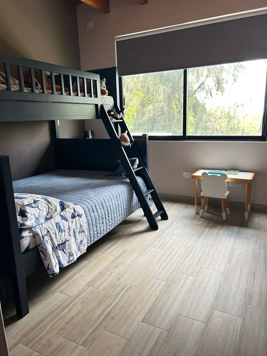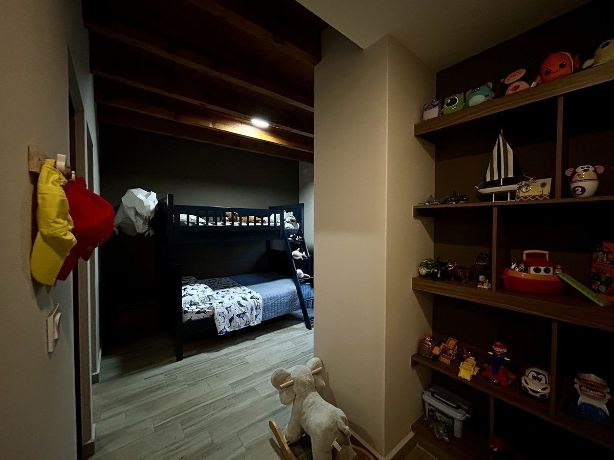Área flexible con mueble empotrado, habitación uno con muebles empotrados, vestidor y baño, habitación dos con clóset y baño completo con vista a la reserva
