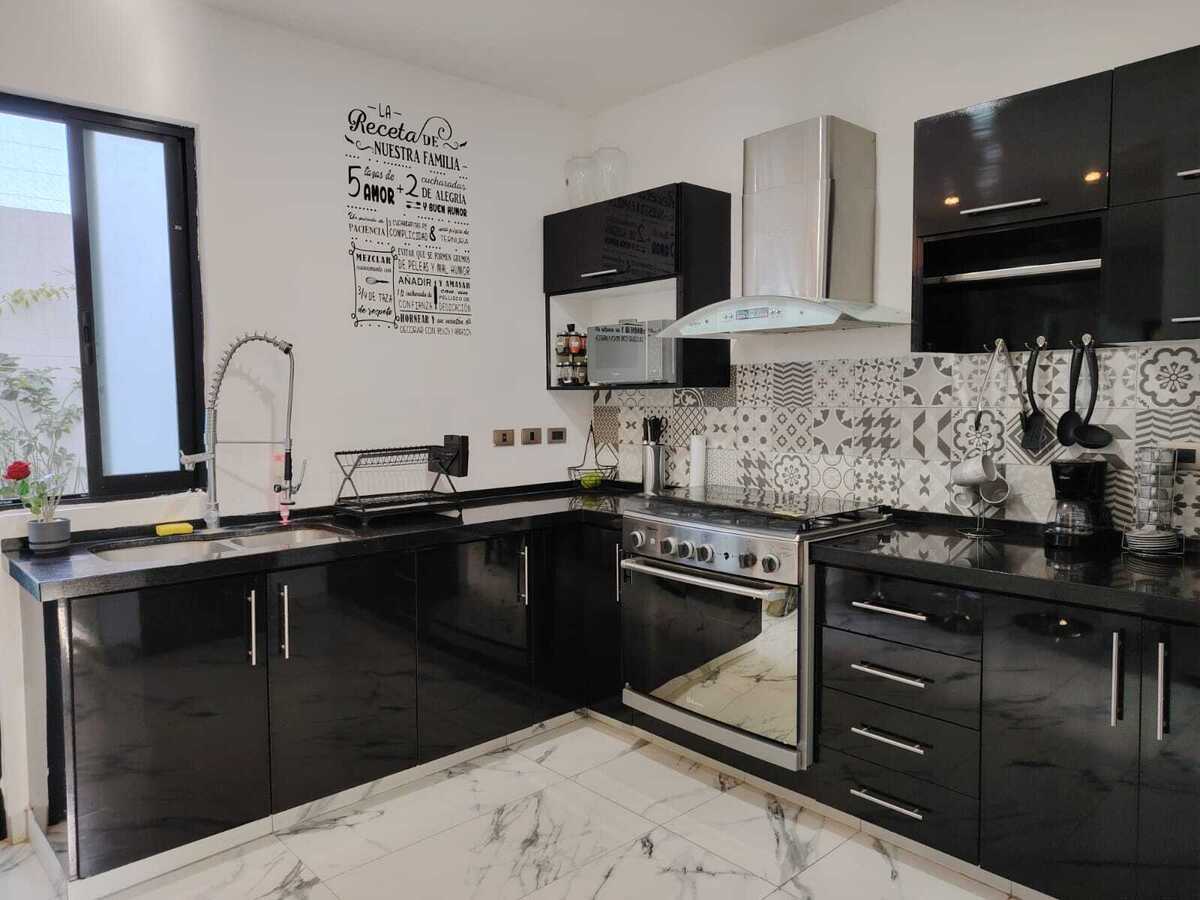 Cocina equipada con cubierta de granito y alacena amplia