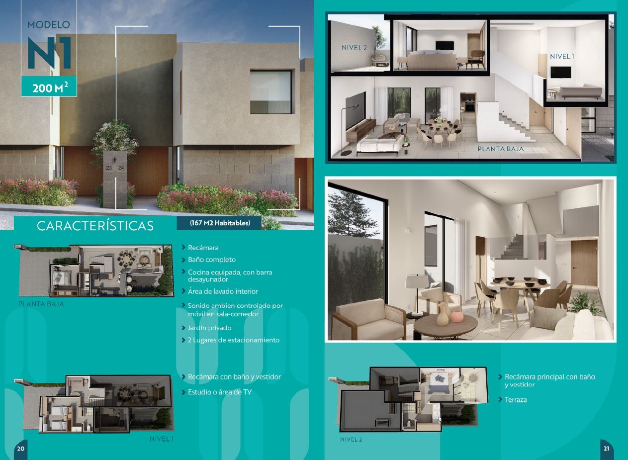 Casa en venta Amaia Modelo "N1" Altos de Juriquilla. 200 m2 de Construcción (167 habitables) + 8.49 m2 de Jardín. Tres Niveles. Tres Recámaras. EN PLANTA BAJA Recámara con Baño Completo. Cocina equipada con barra desayunador. Área de Lavado Interior. Sonido Ambiente controlado por móvil, Jardín Privado. 2 Lugares de Estacionamiento.