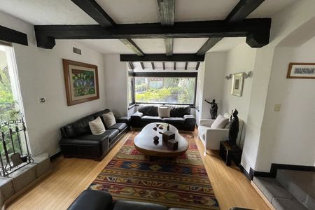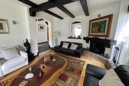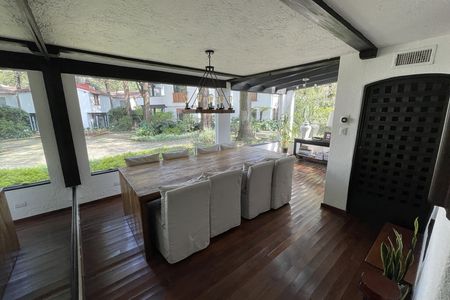 Jardin, terraza con vista al bosque, salon de fiestas con baño completo, cuarto de servicio completo aréa de lavado, patio de servicio, oficina, paneles solares.
