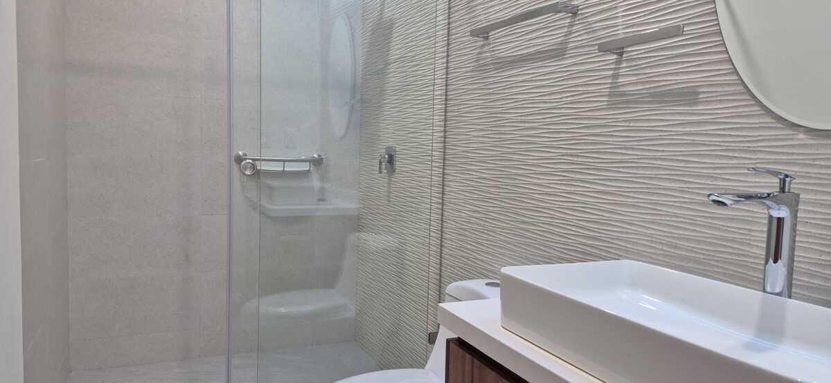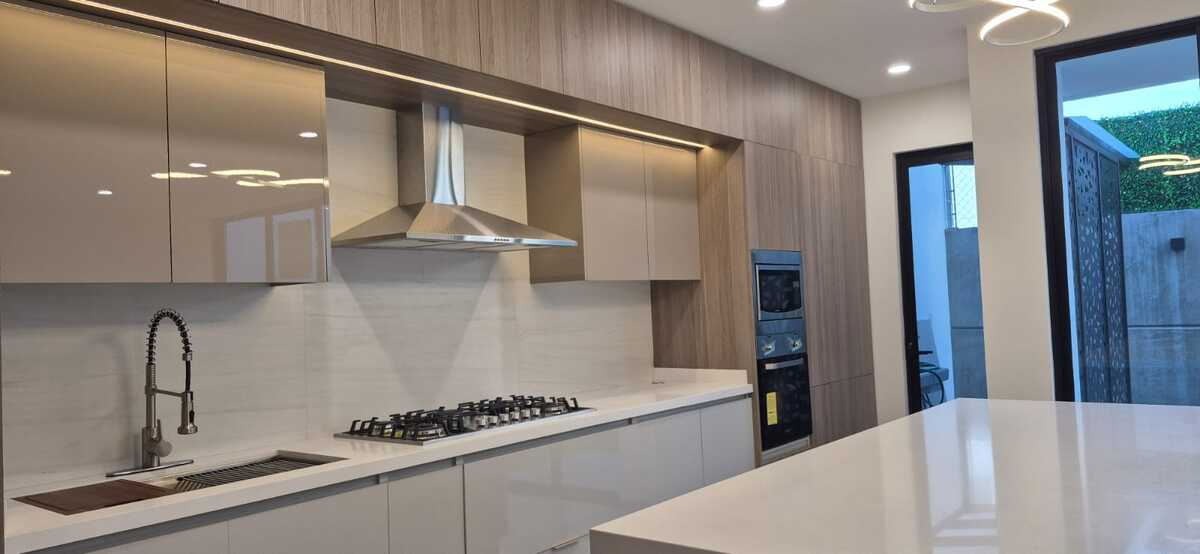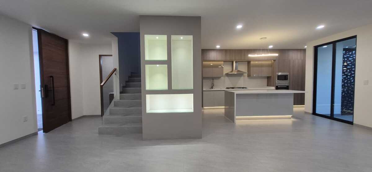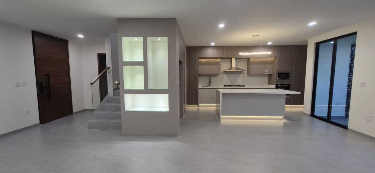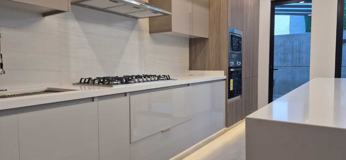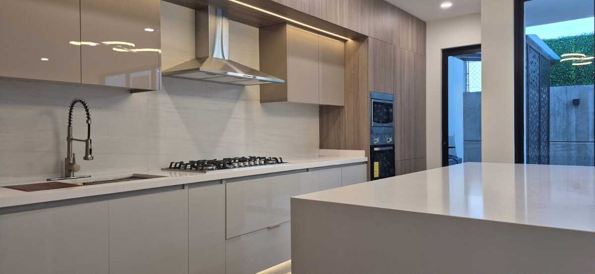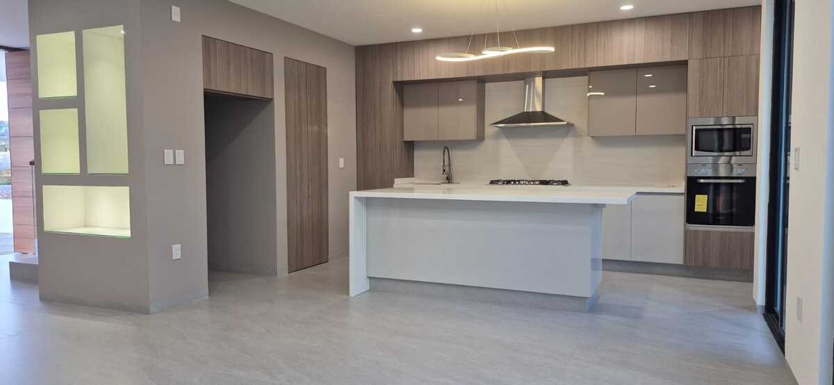 • Cocina equipada, con isla y alacena,cubiertas de cuarzo doble tarja.