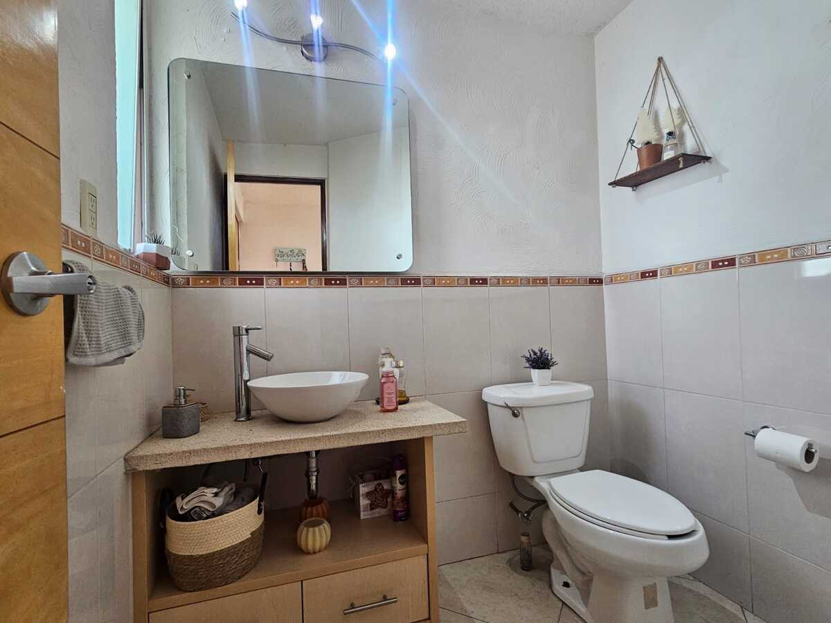 La casa es muy linda y lista para que la disfrutes. Al entrar encontramos la sala, medio baño de visias, un closet de visitas y en desnivel subiendo unas escaleras está el área del comedor muy iluminado y acogedor. Con salida al jardín. En este nevel tenemos una cocina de muy buen tamaño, buena distribución y espacio de almacenamiento, junto a la cocina tenemos el área de lavado, que es muy amplia e iluminada.