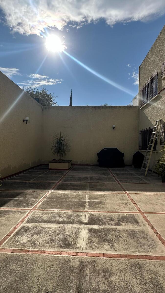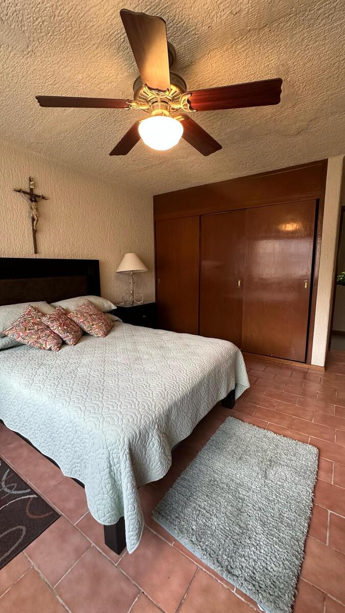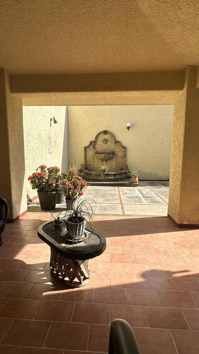En la planta baja, encontrarás una habitación secundaria y un medio baño de visitas, además de una amplia y luminosa estancia que integra el comedor y la sala. Grandes ventanales permiten que la luz natural inunde los espacios, conectando el interior con la terraza con el patio exterior. La cocina cerrada es espaciosa y funcional, con 2 accesos para mayor comodidad. Un elemento destacado es la fuente de cantera que adorna el patio exterior, añadiendo un toque de sofisticación y armonía.