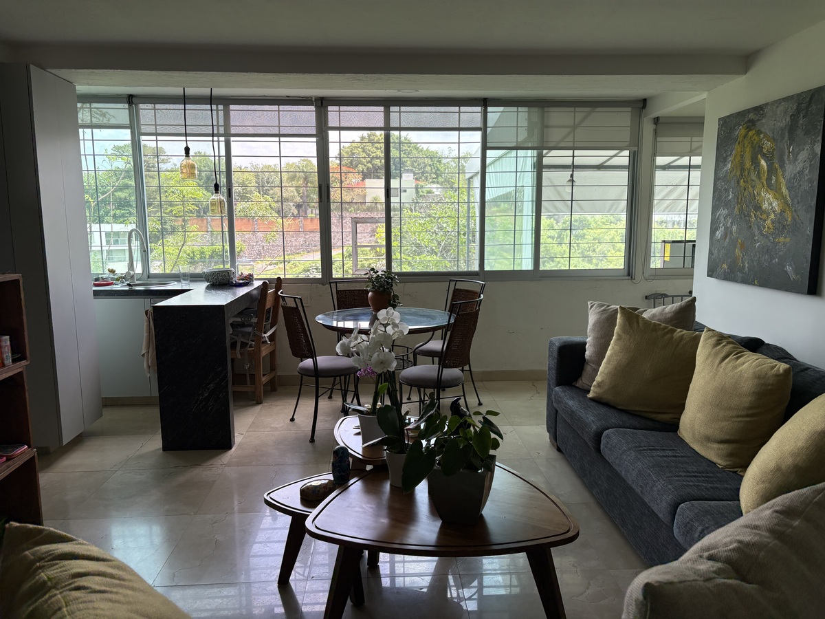 Cuenta con su sala comedor, estar de TV Y cocina integral. Cuarto con closet vestidor y baño compelto. Área de lavado.