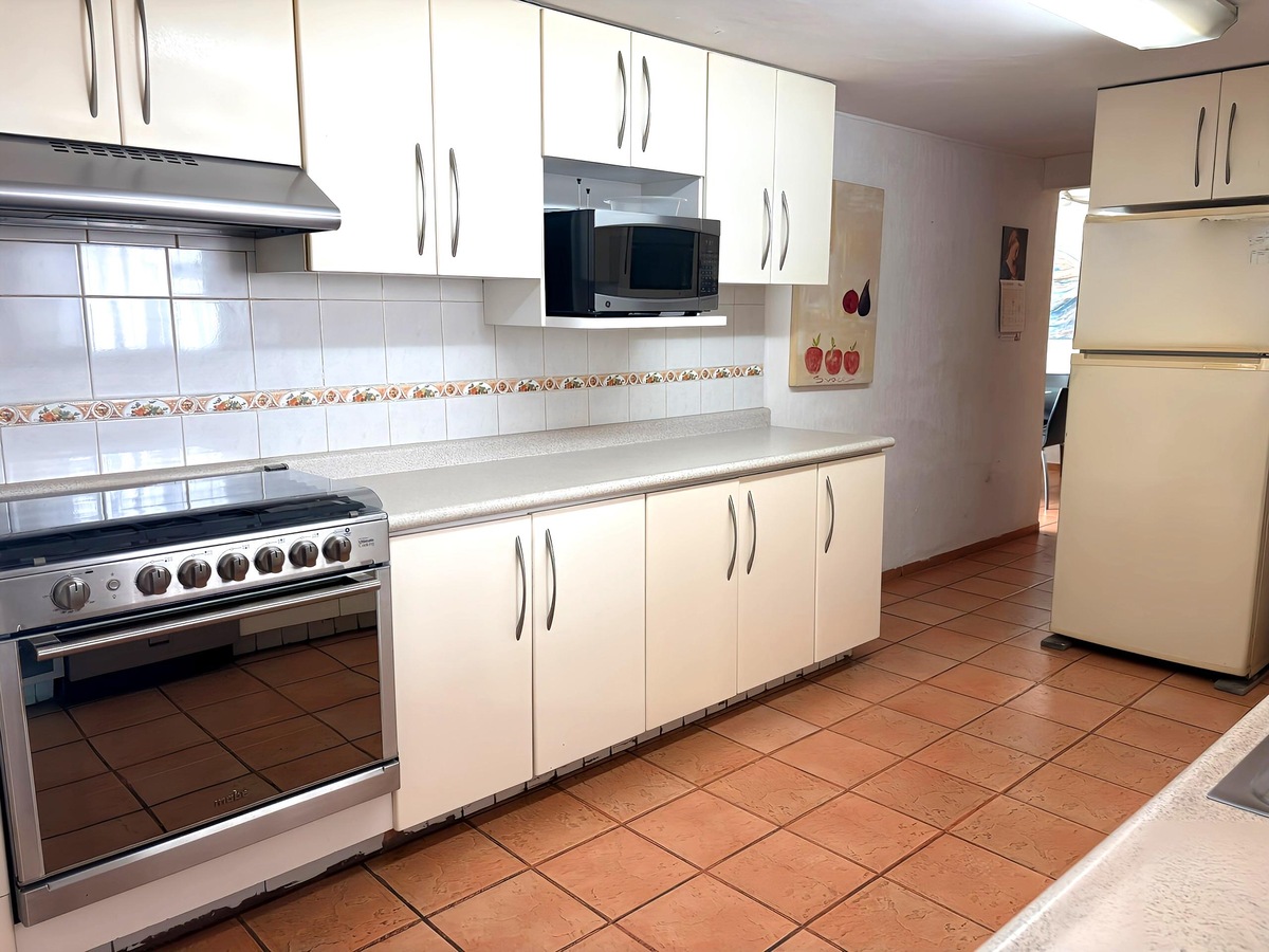 La cocina se conecta al ante comedor y al comedor así como al área de lavado. Tiene 2 cuartos de servicio y comparten 1 baño completo. Tiene cochera para 2 autos.