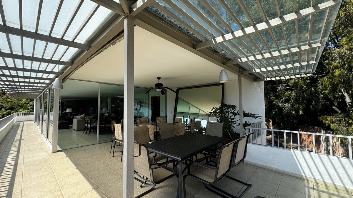 Del comedor sales a una terraza techada que rodea toda la casa.