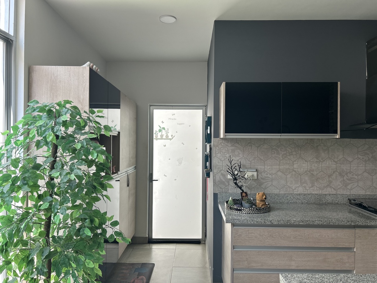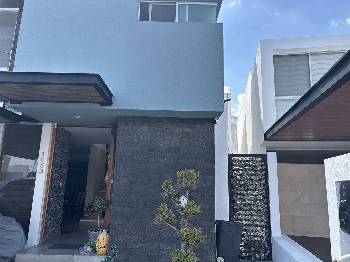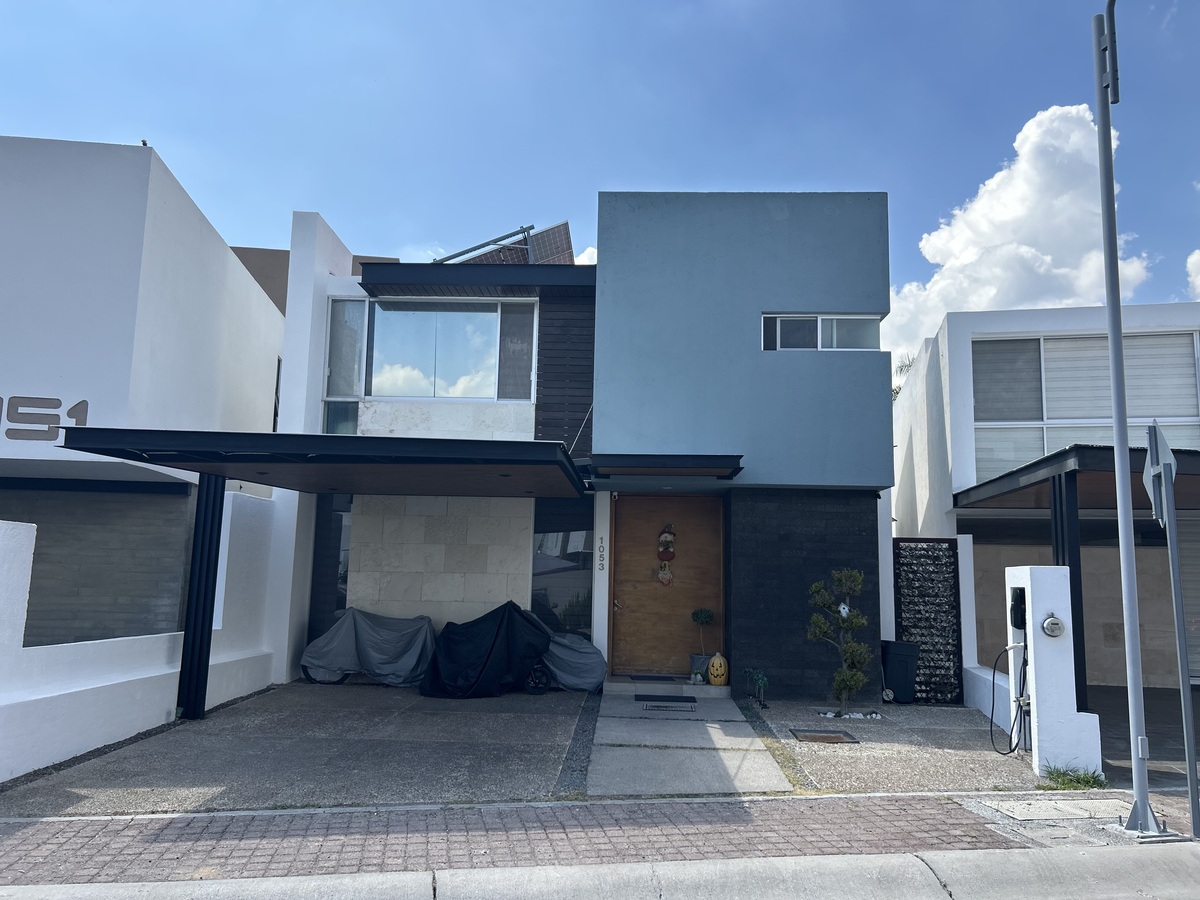 La casa cuenta con dos plantas con acabados modernos, paneles solares, cargador para vehículo eléctrico, cisterna y tinaco