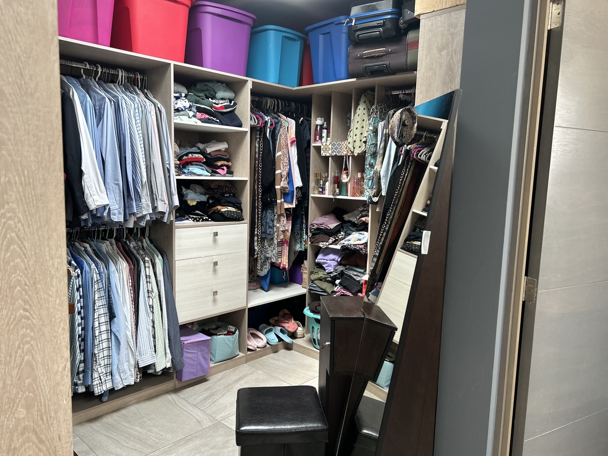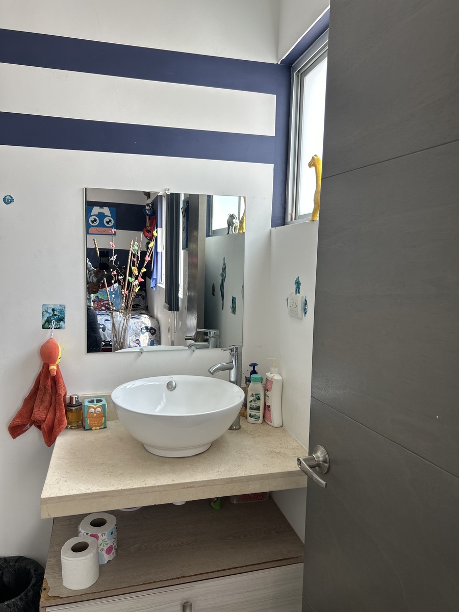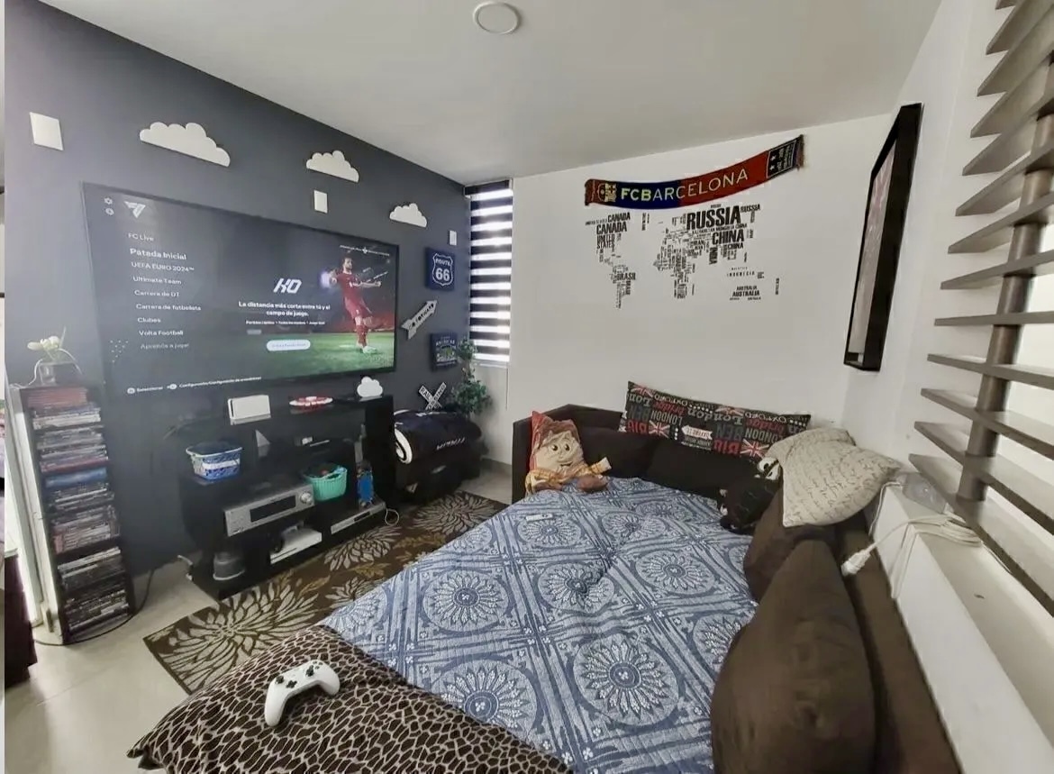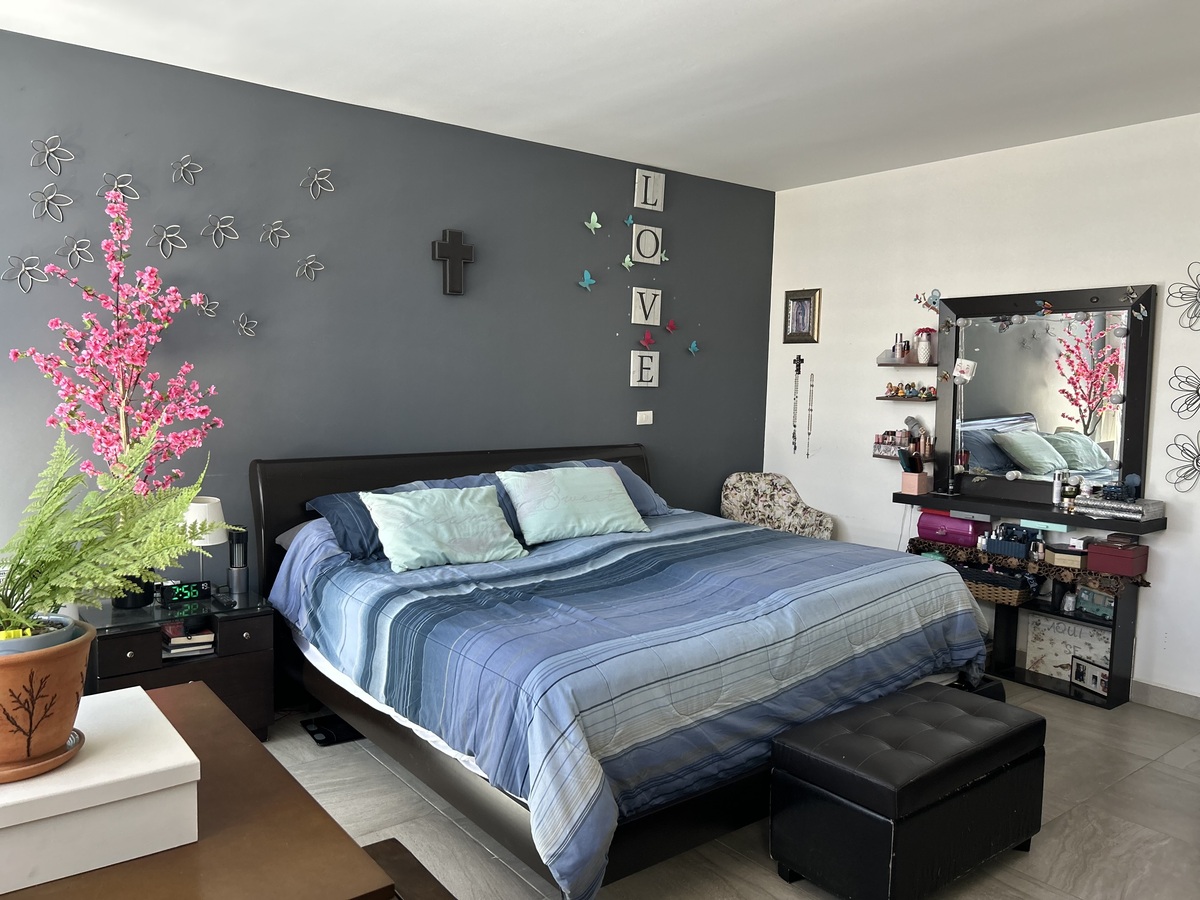 Sala de TV abierta, recámara principal con vestidor y baño, y recámaras secundarias con baño independiente