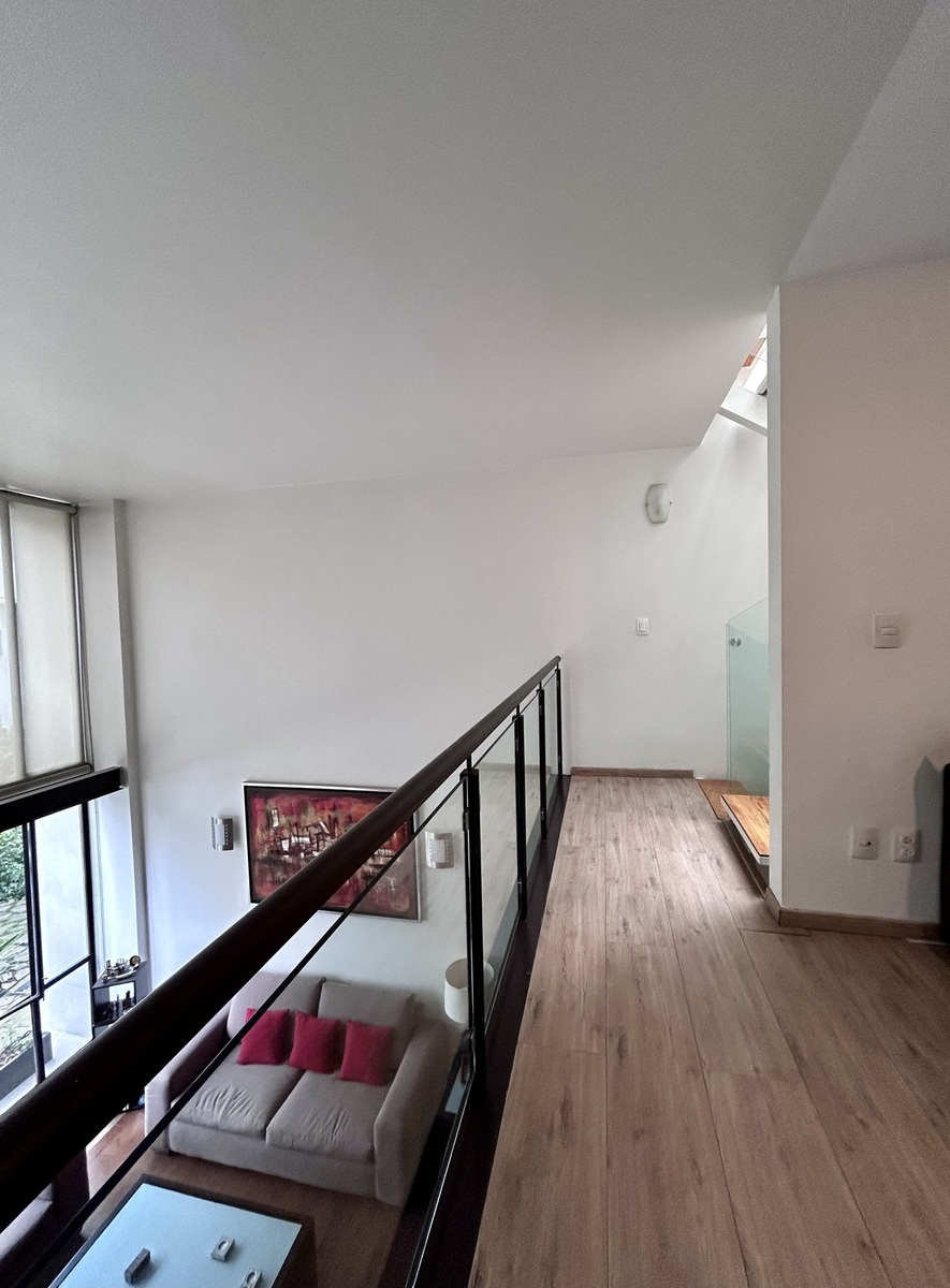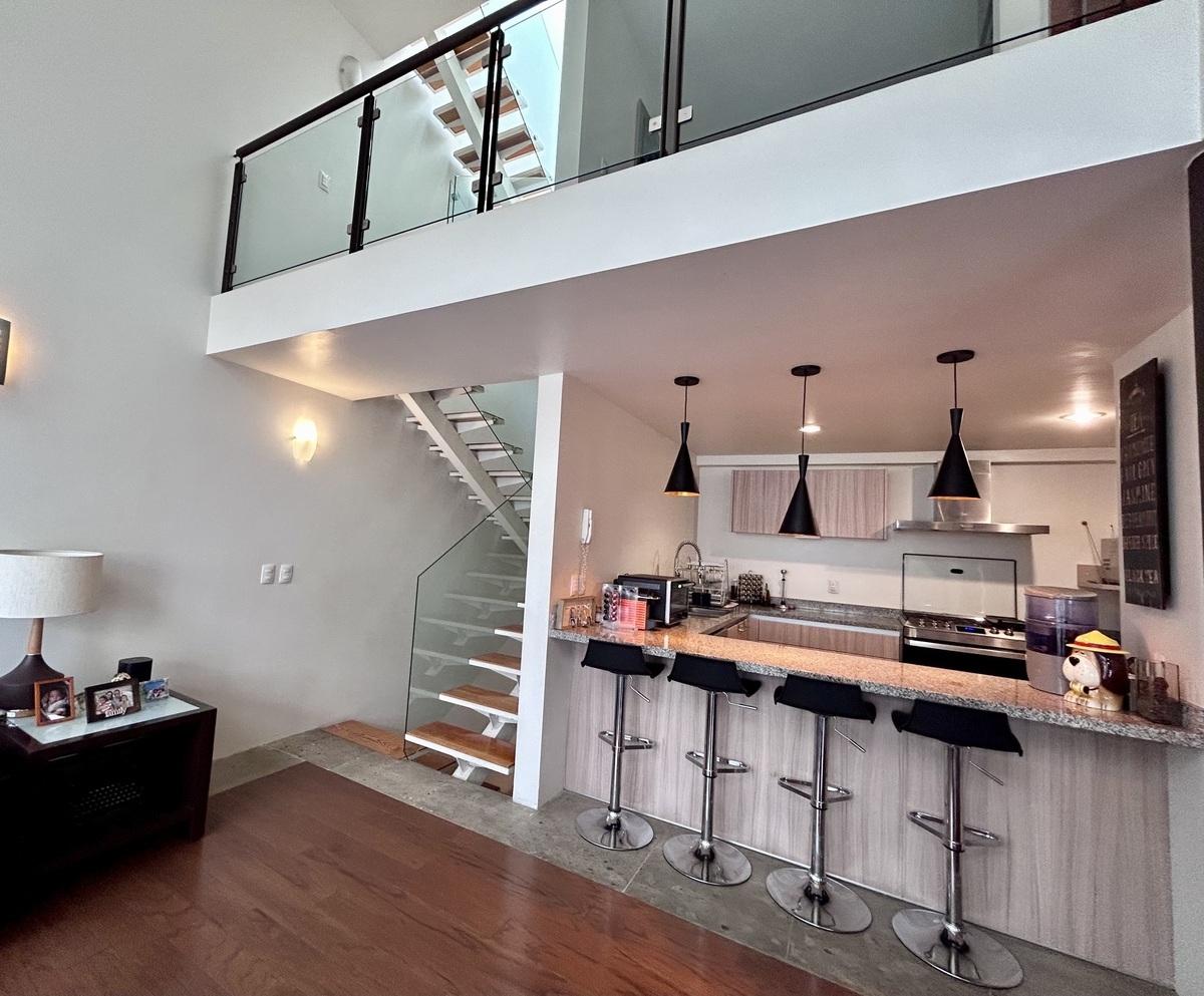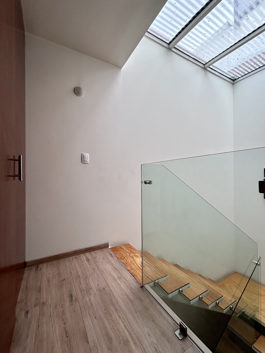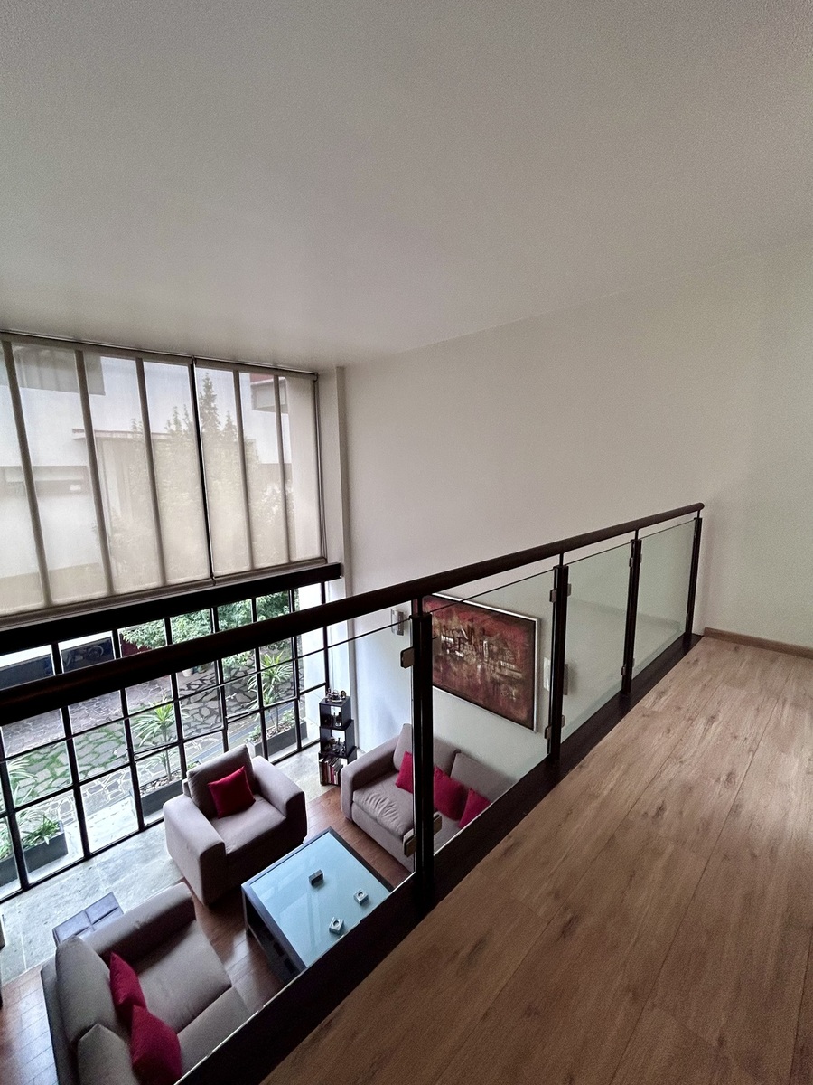Iluminada, calientita, grandes ventanales, pisos de ingeniería, buena ubicación, barandales de vidrio templado
