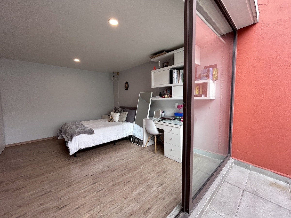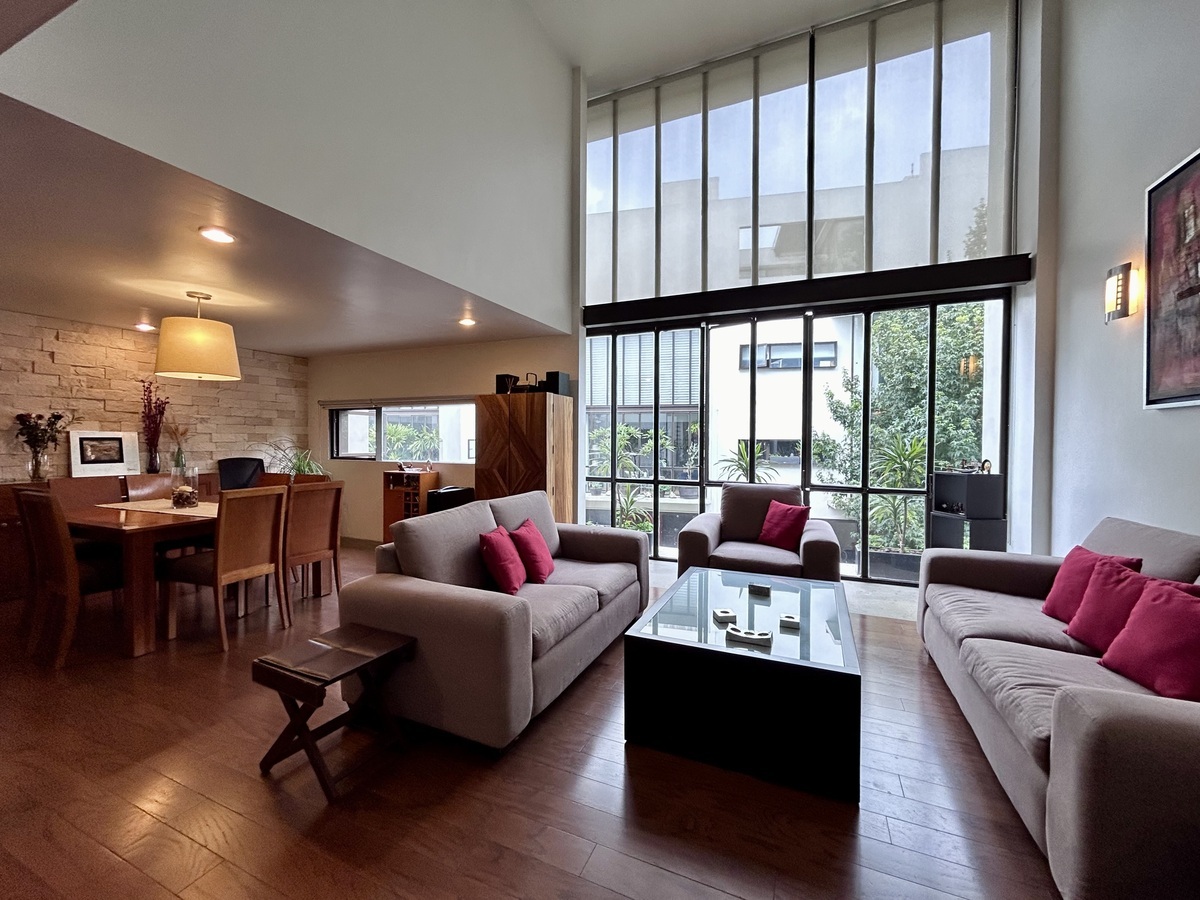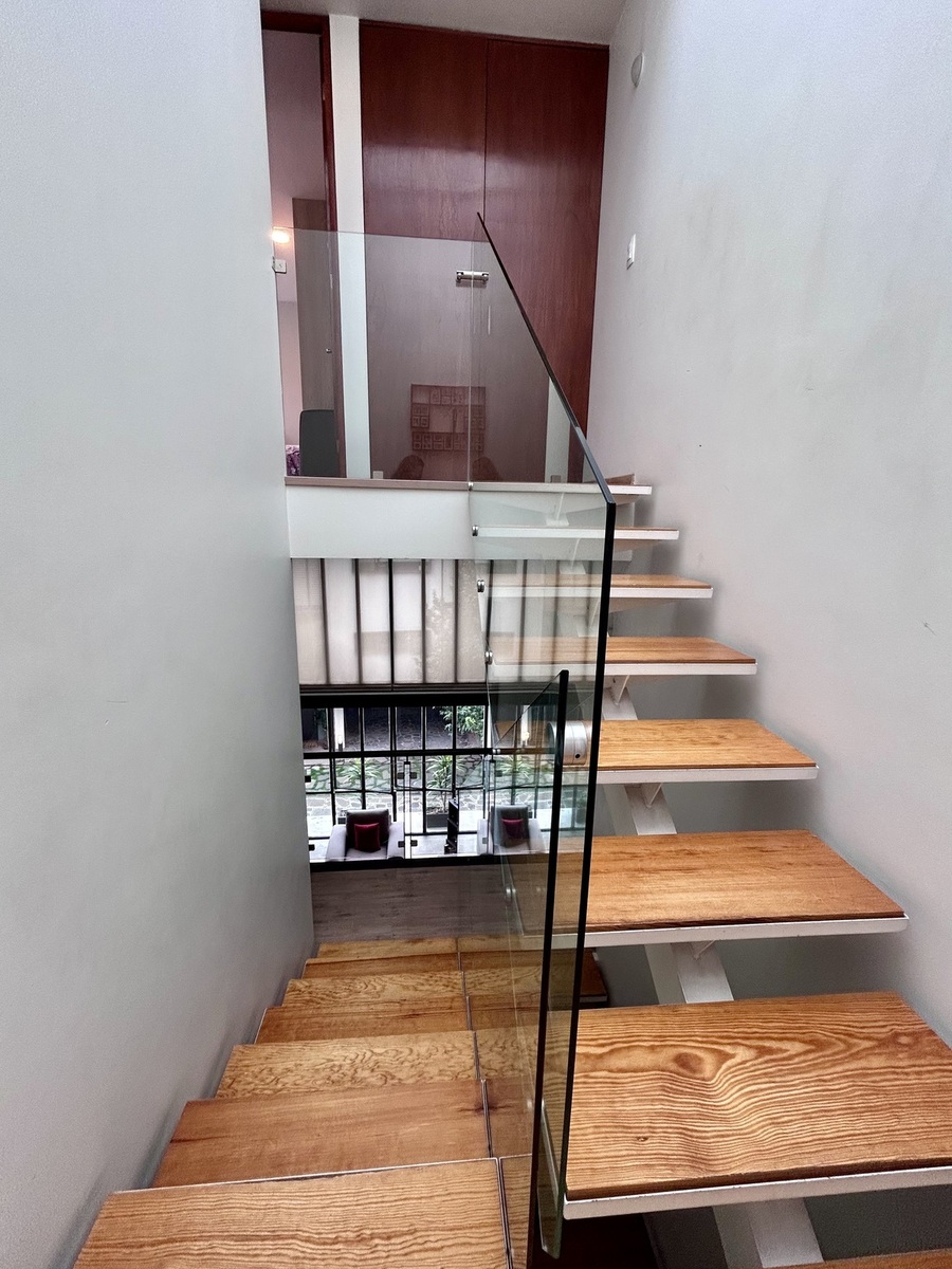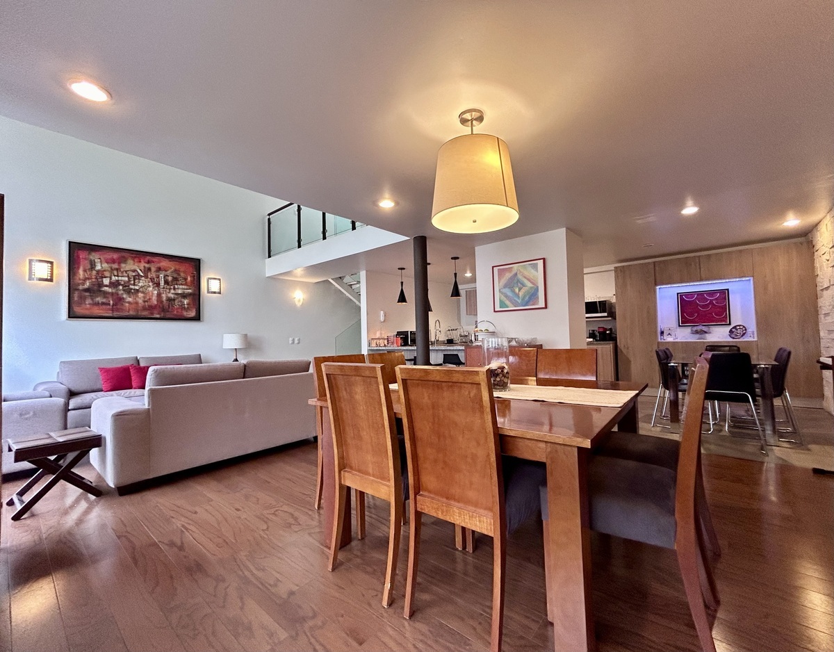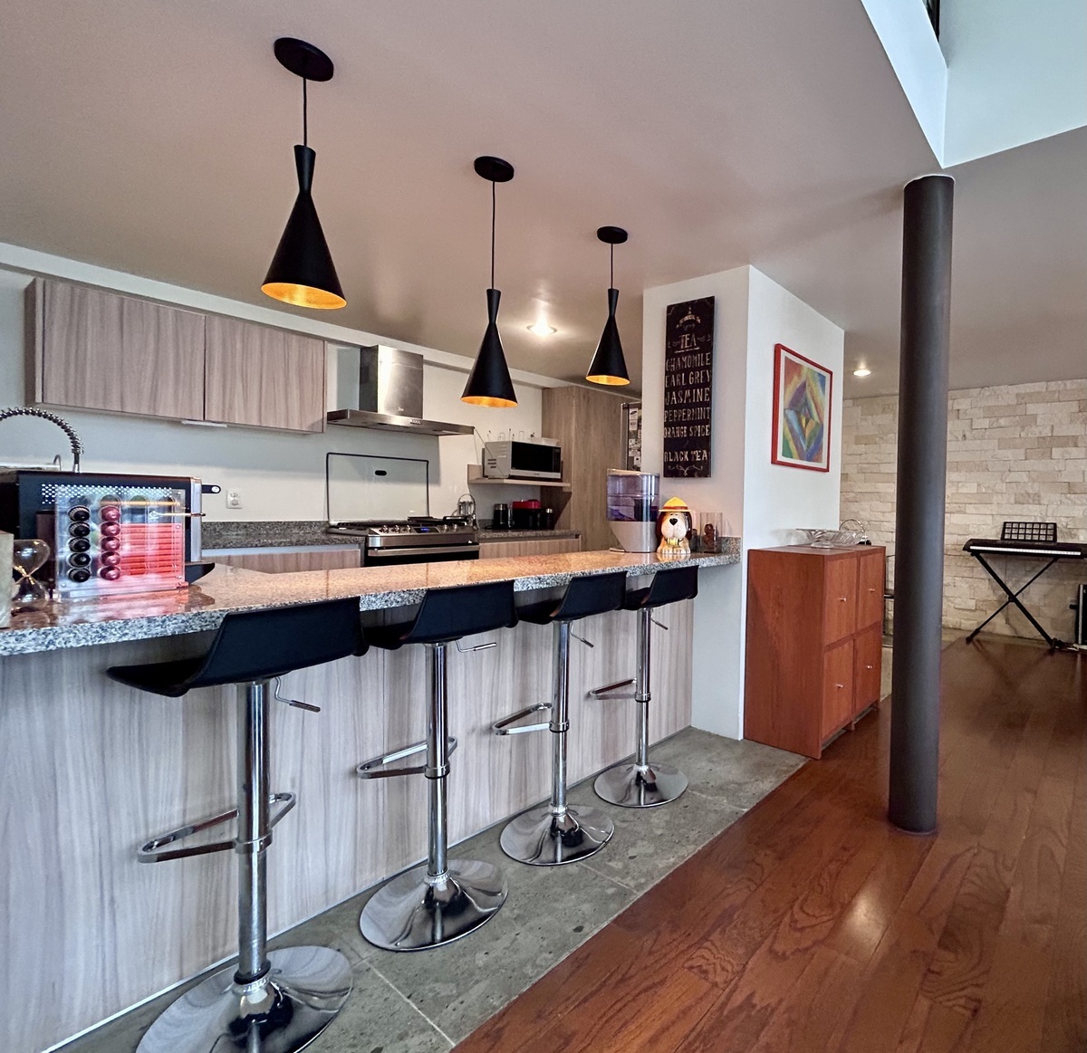 Iluminada, calientita, grandes ventanales, pisos de ingeniería, buena ubicación, barandales de vidrio templado