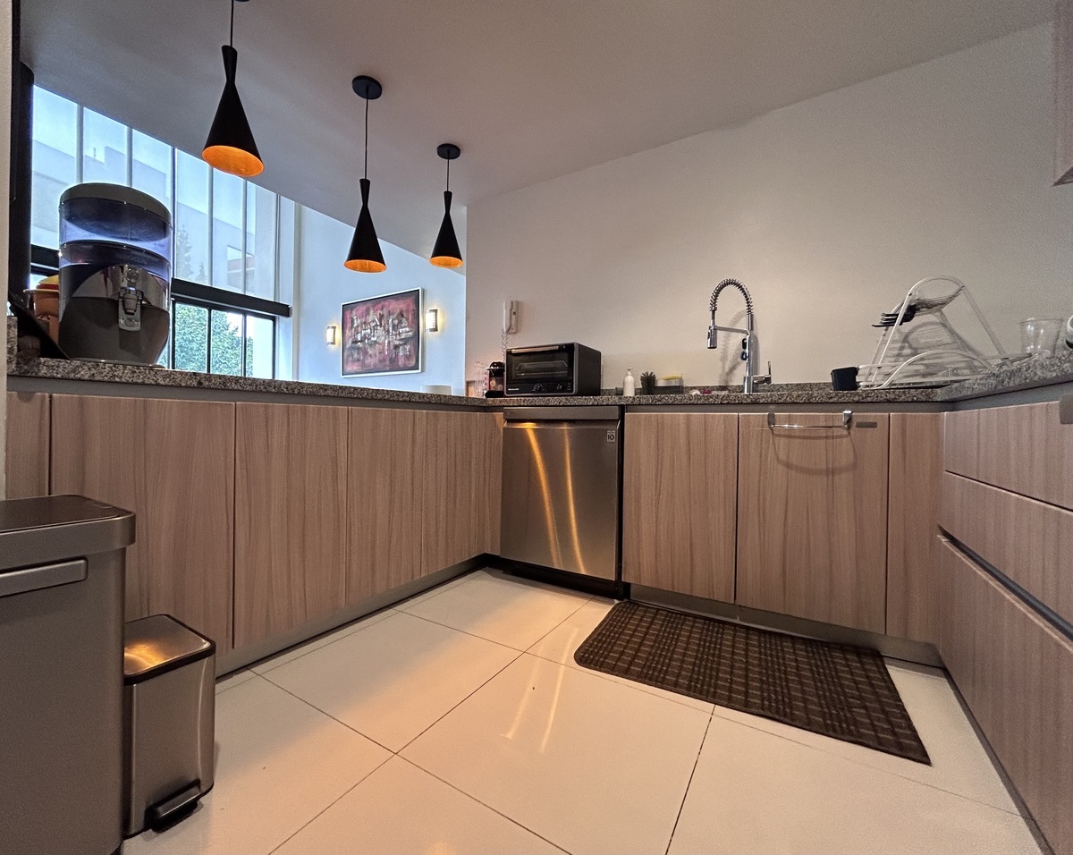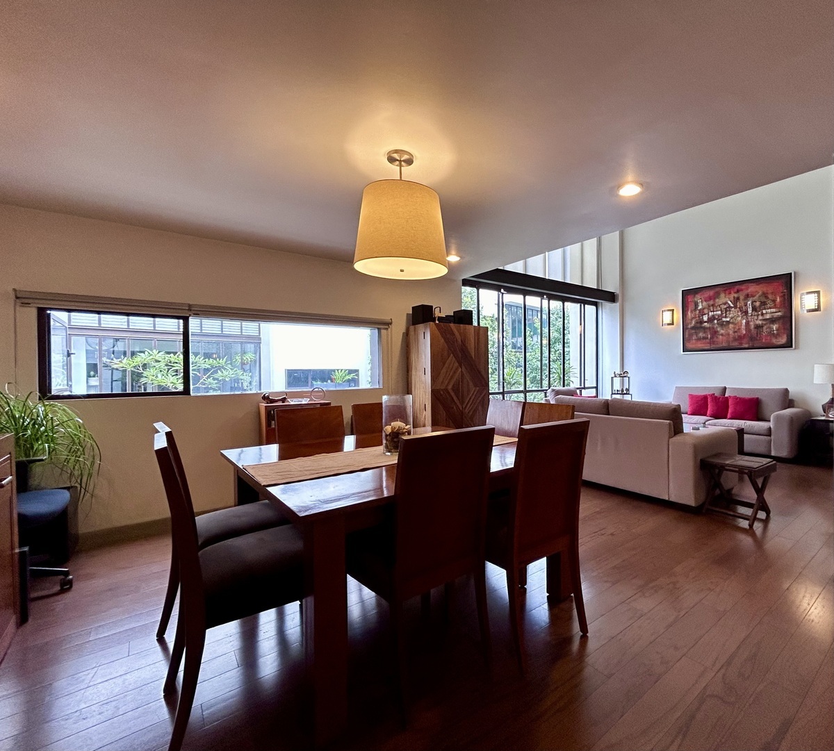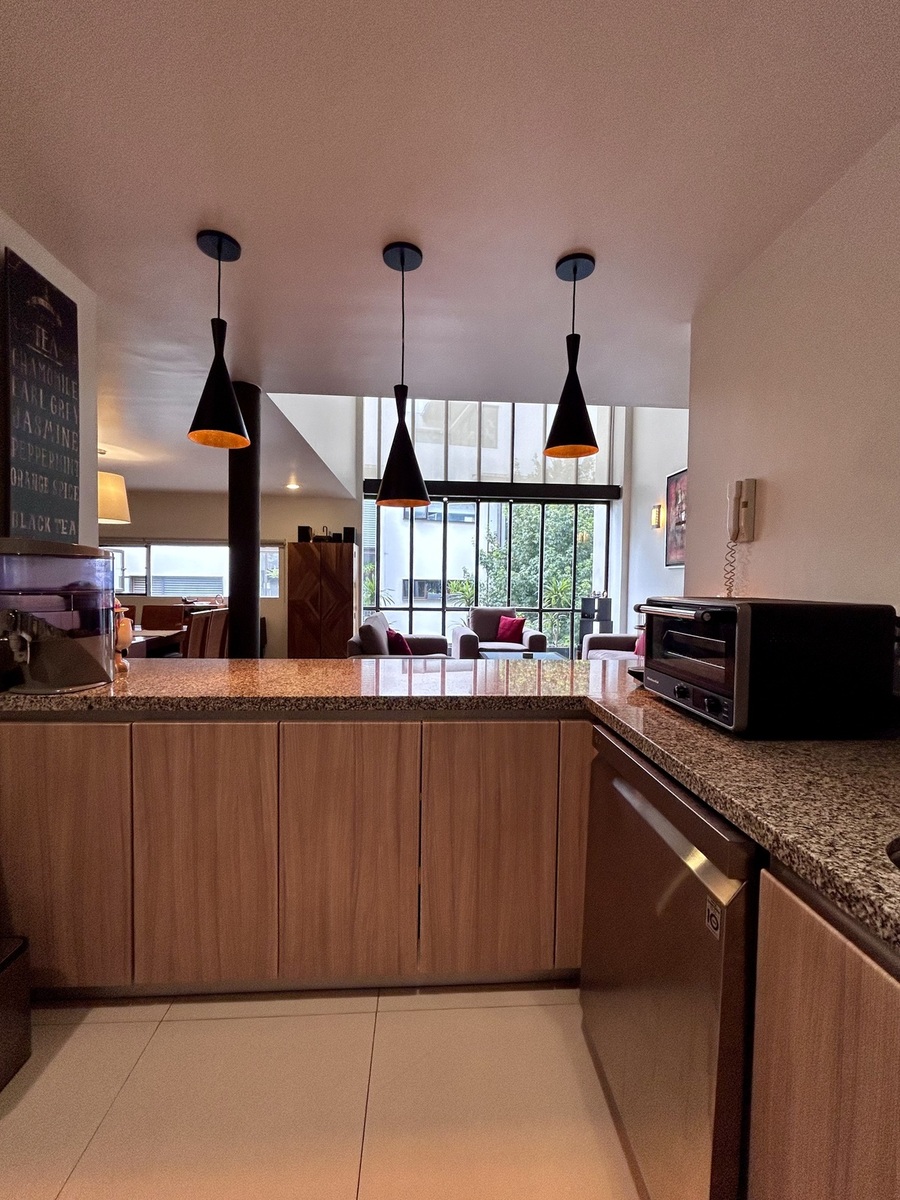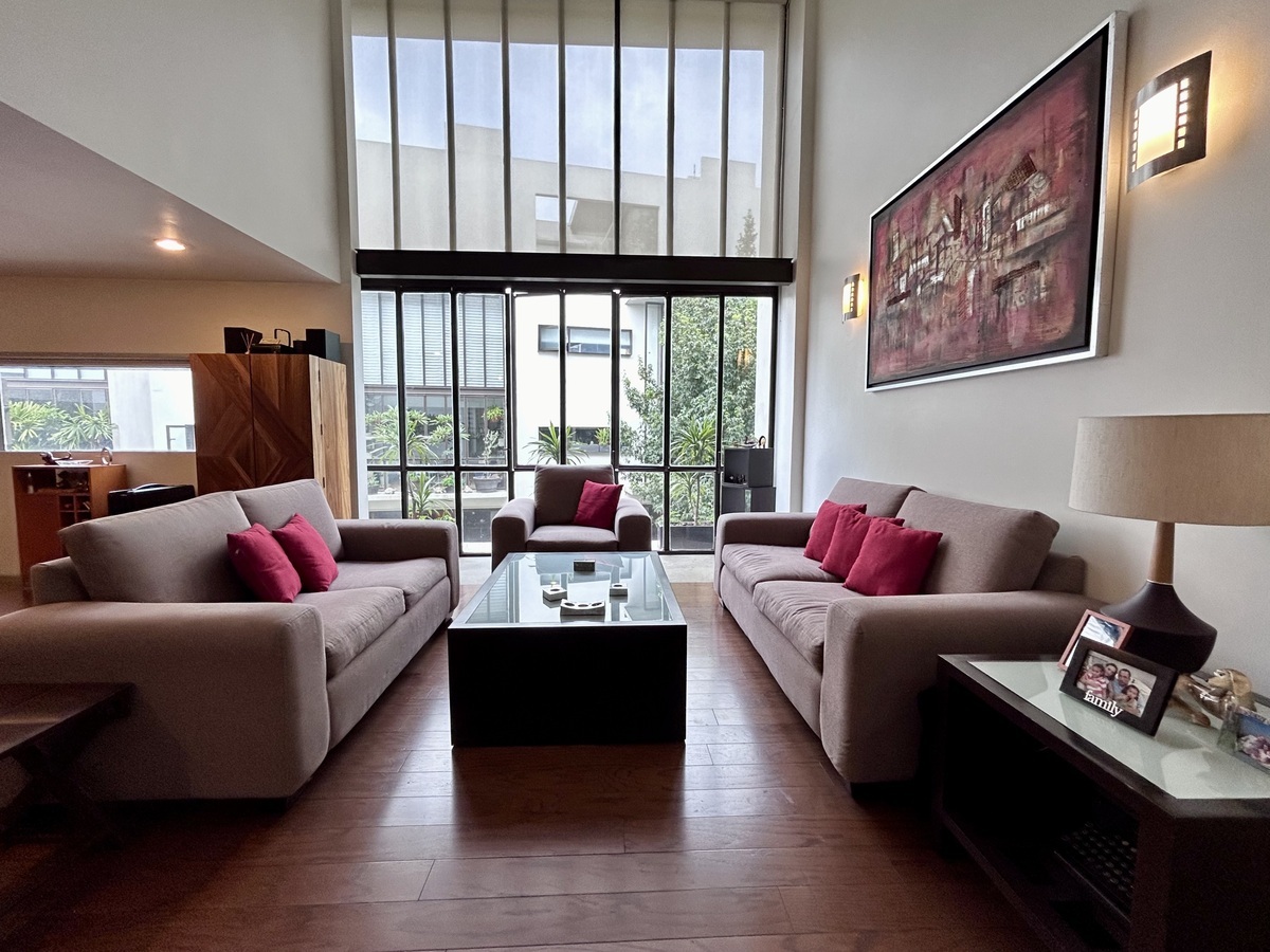 Iluminada, calientita, grandes ventanales, pisos de ingeniería, buena ubicación, barandales de vidrio templado