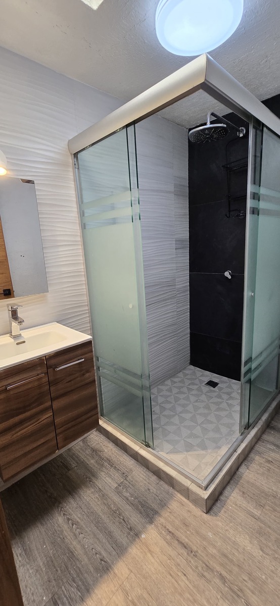 Los baños totalmente remodelados con canceles de vidrio