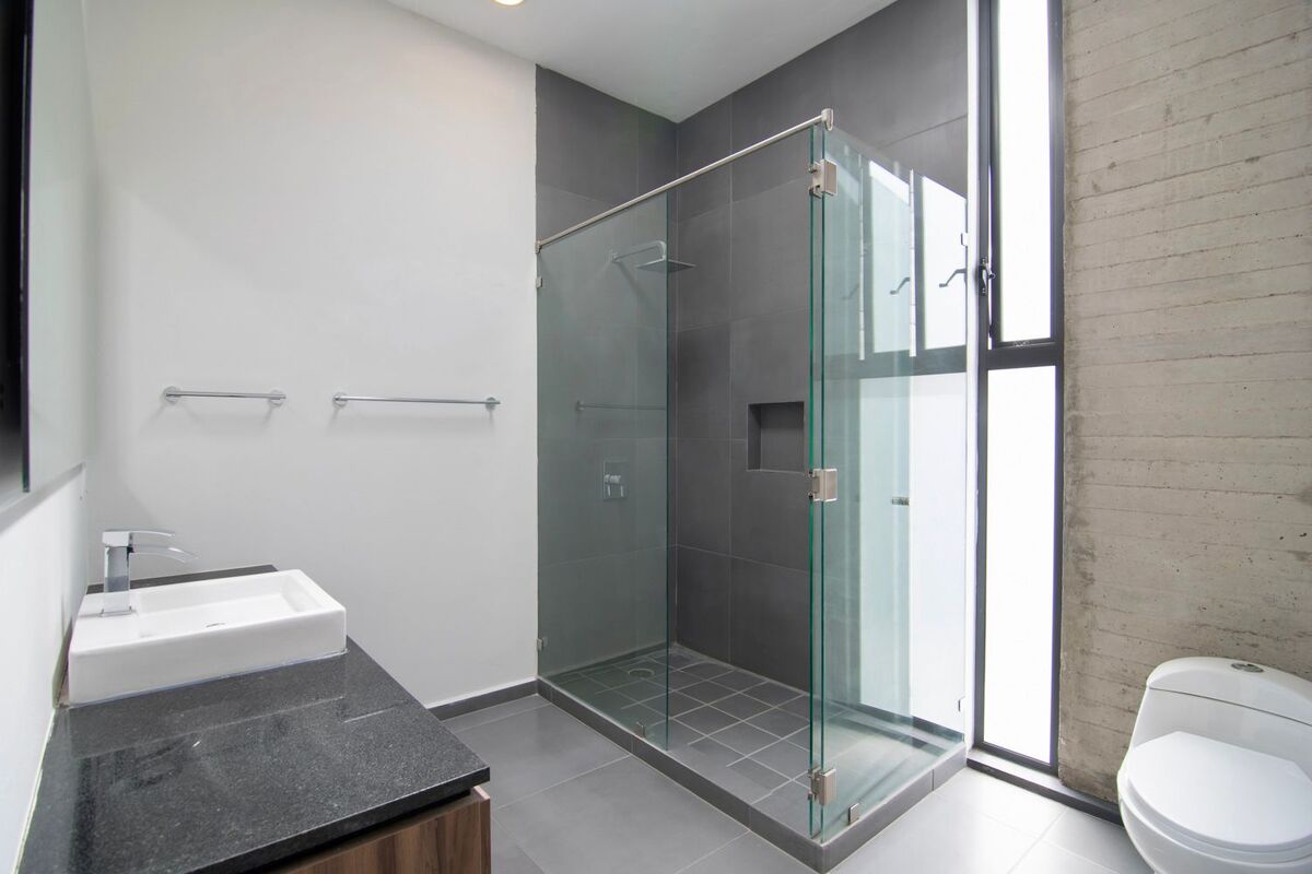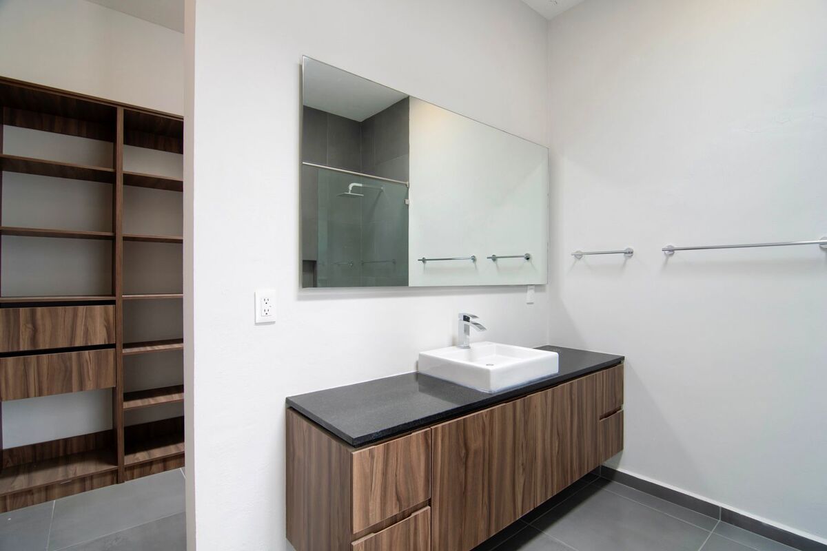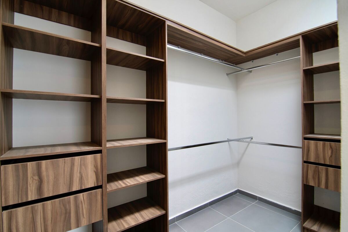 3 habitaciones, la principal con walking closet y baño completo, las 2 secundarias con clóset y 1 baño en pasillo para compartir.