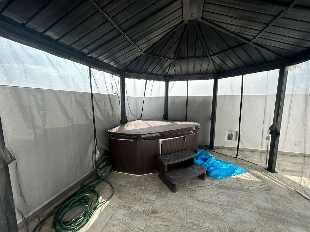 Pérgola con área de jacuzzi, perfecta para relajarse y disfrutar.