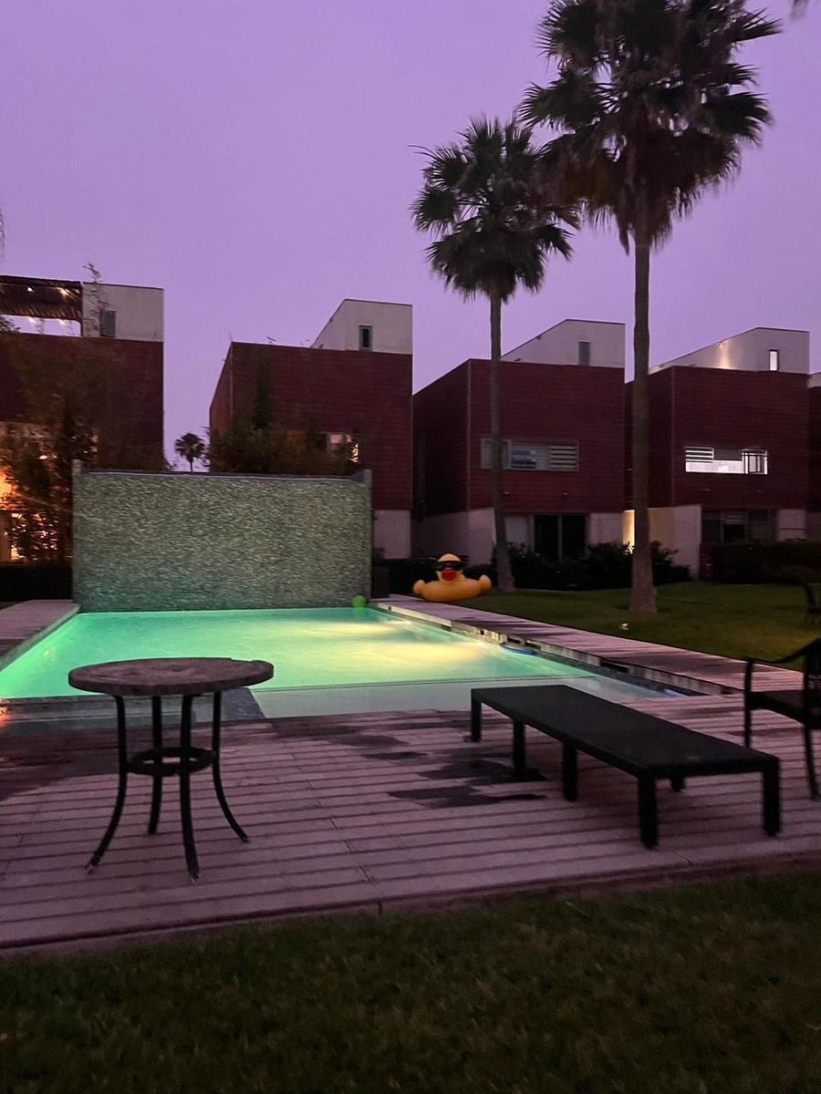 • Planta baja: cochera para dos autos, sala, comedor, cocina integral, medio baño y patio con vista a la alberca.