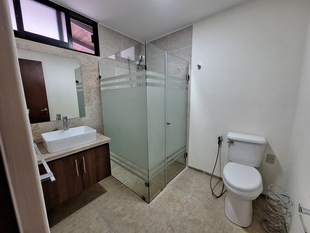 -Amplia recámara principal con closet de piso a techo y baño completo con cancel de cristal templado, minisplit y ventilador.