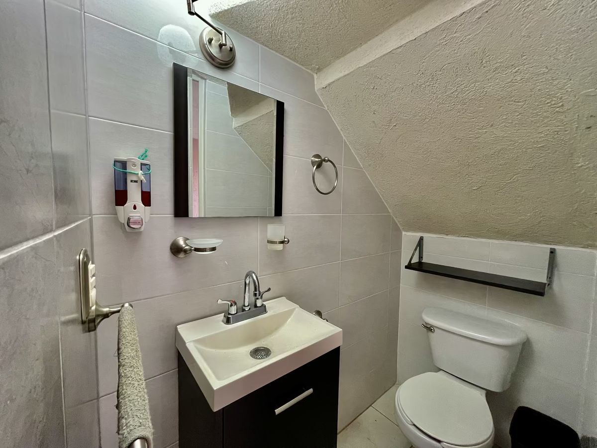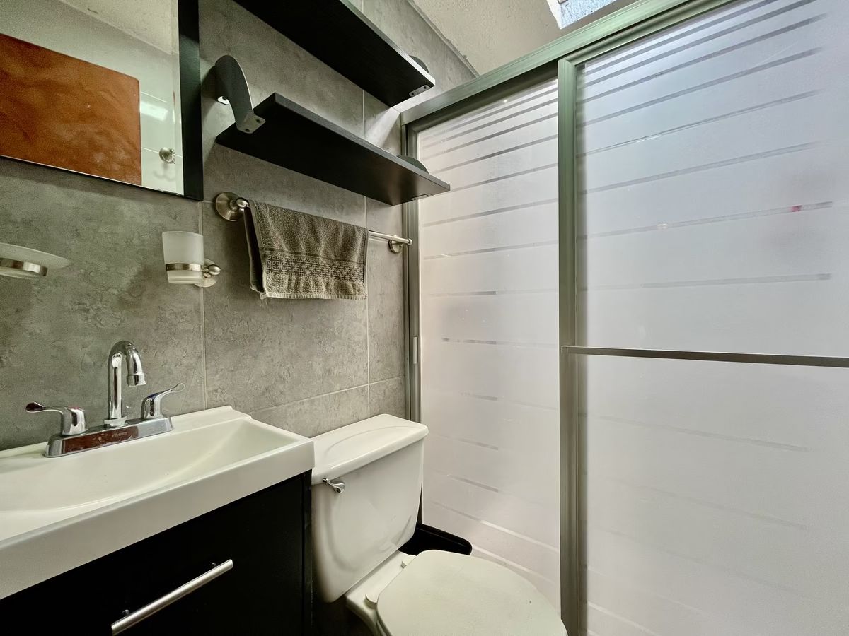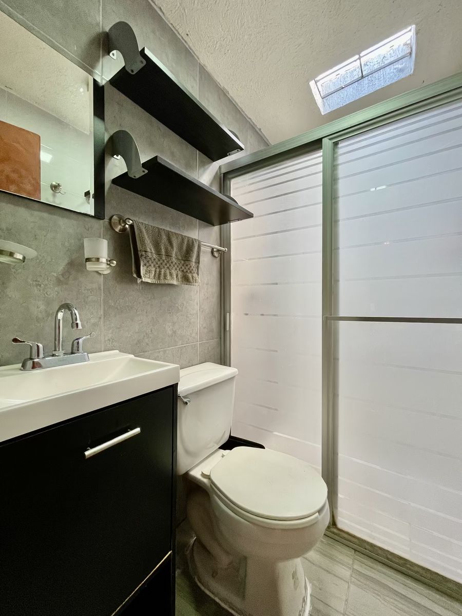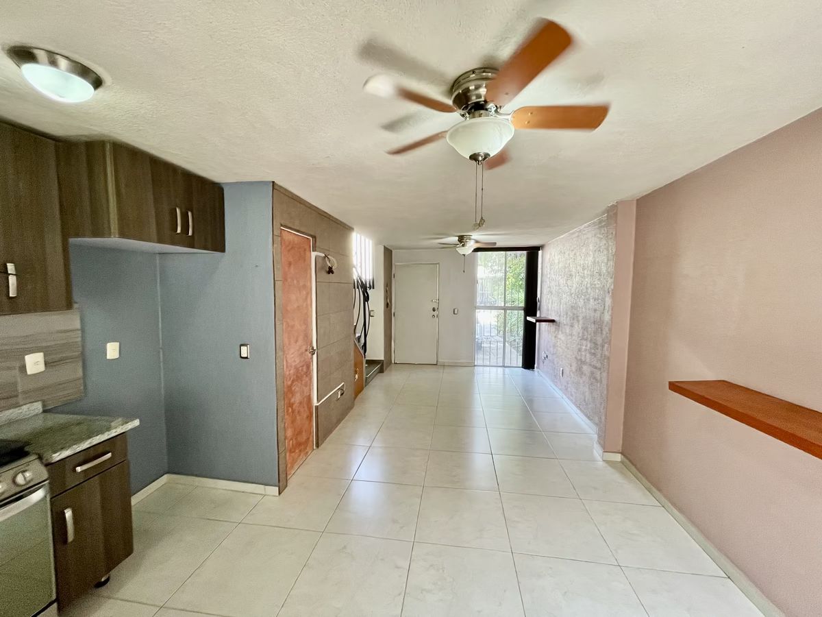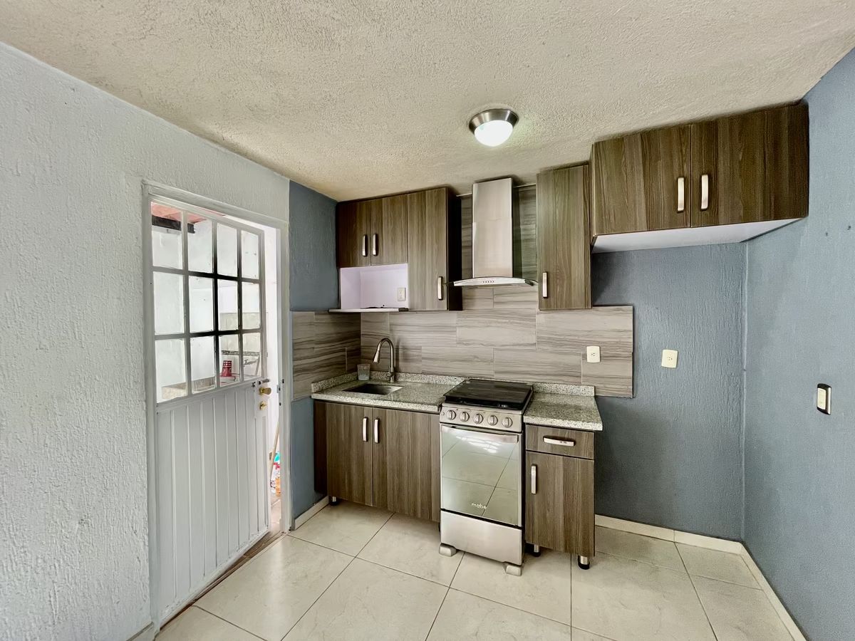 Planta baja: cochera para un auto, cocina, medio baño y área de lavado.