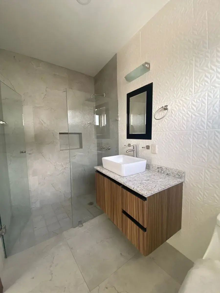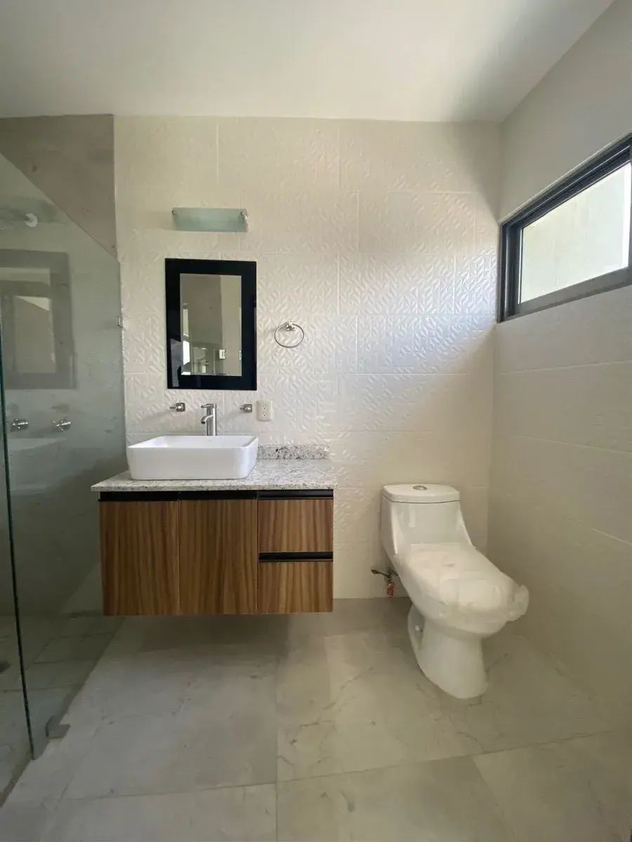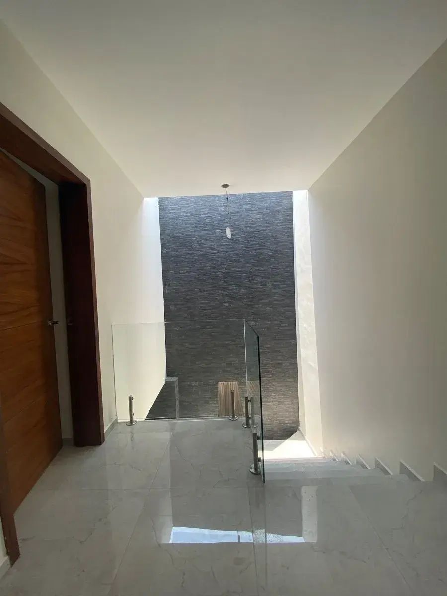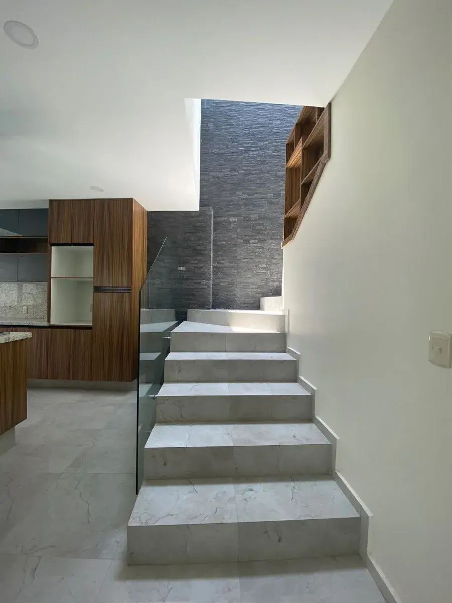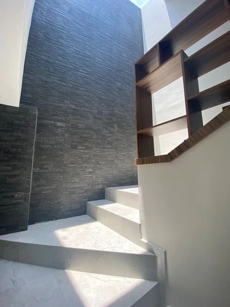 La planta alta te sorprende con una recámara principal con vestidor, baño completo y una amplia terraza con balcón, dos recámaras secundarias con clóset que comparten baño y una área de de escritorio para estudio.