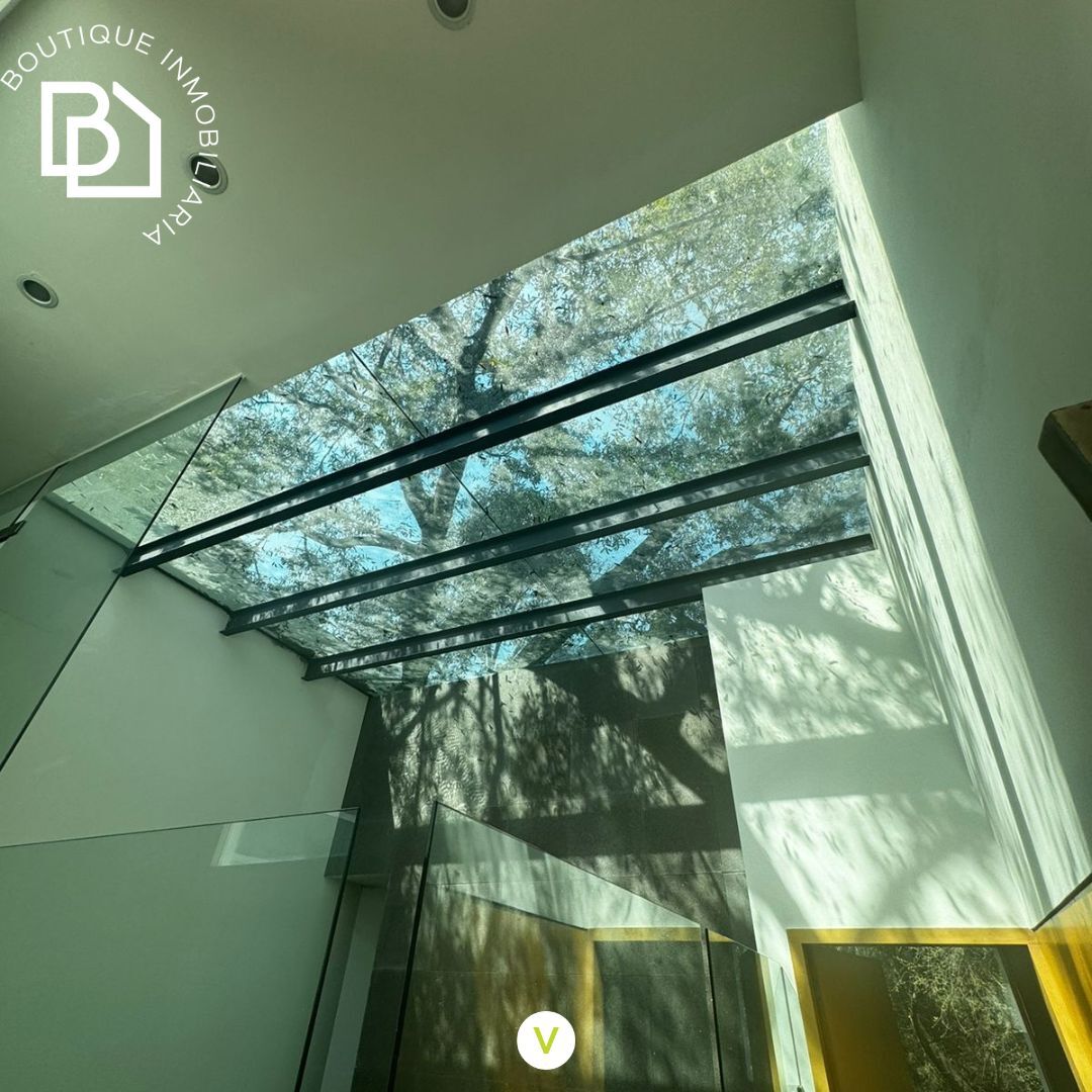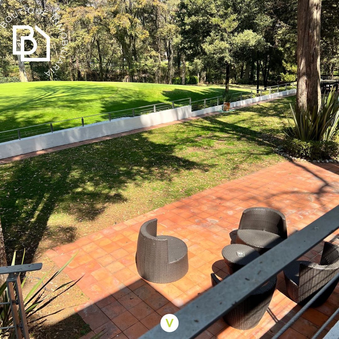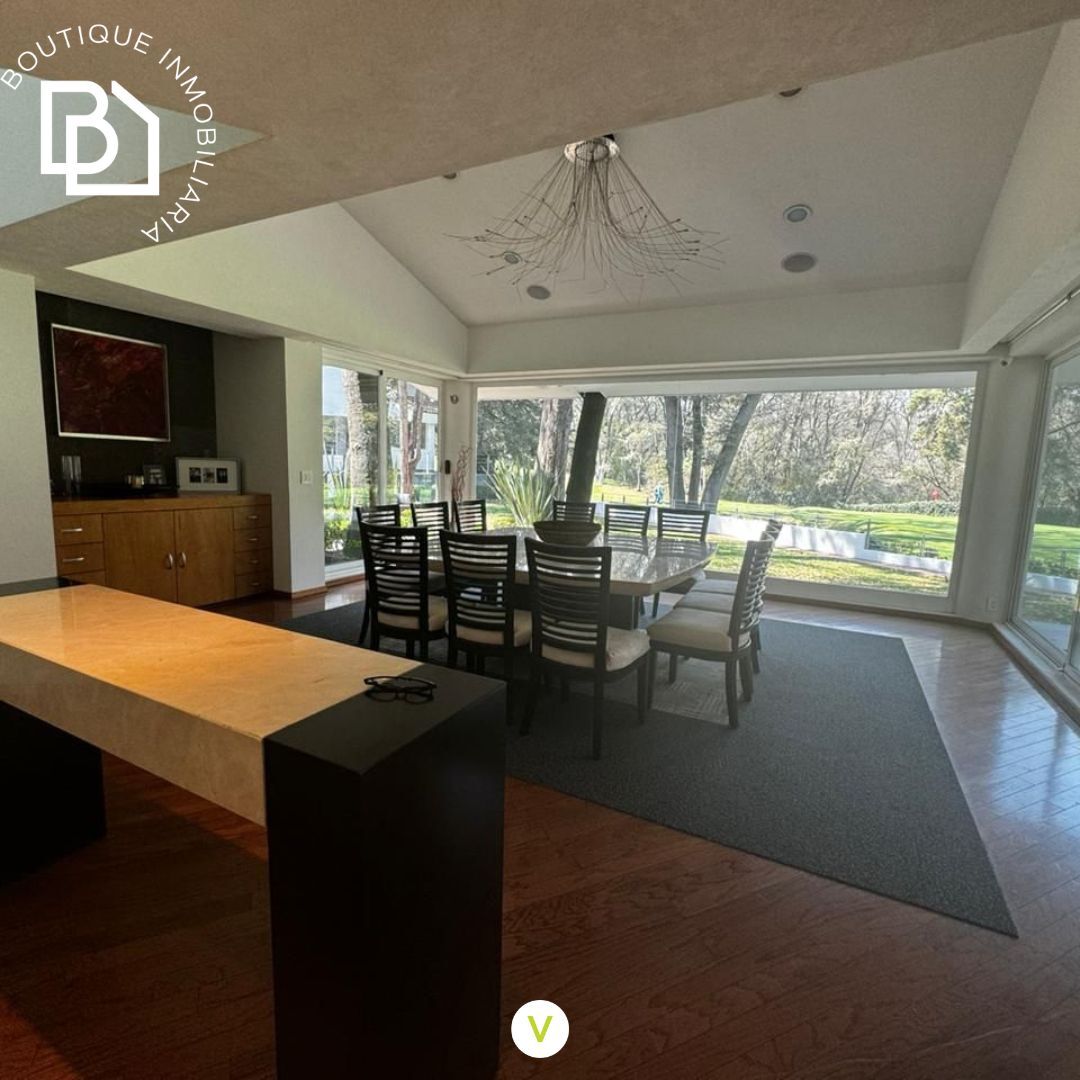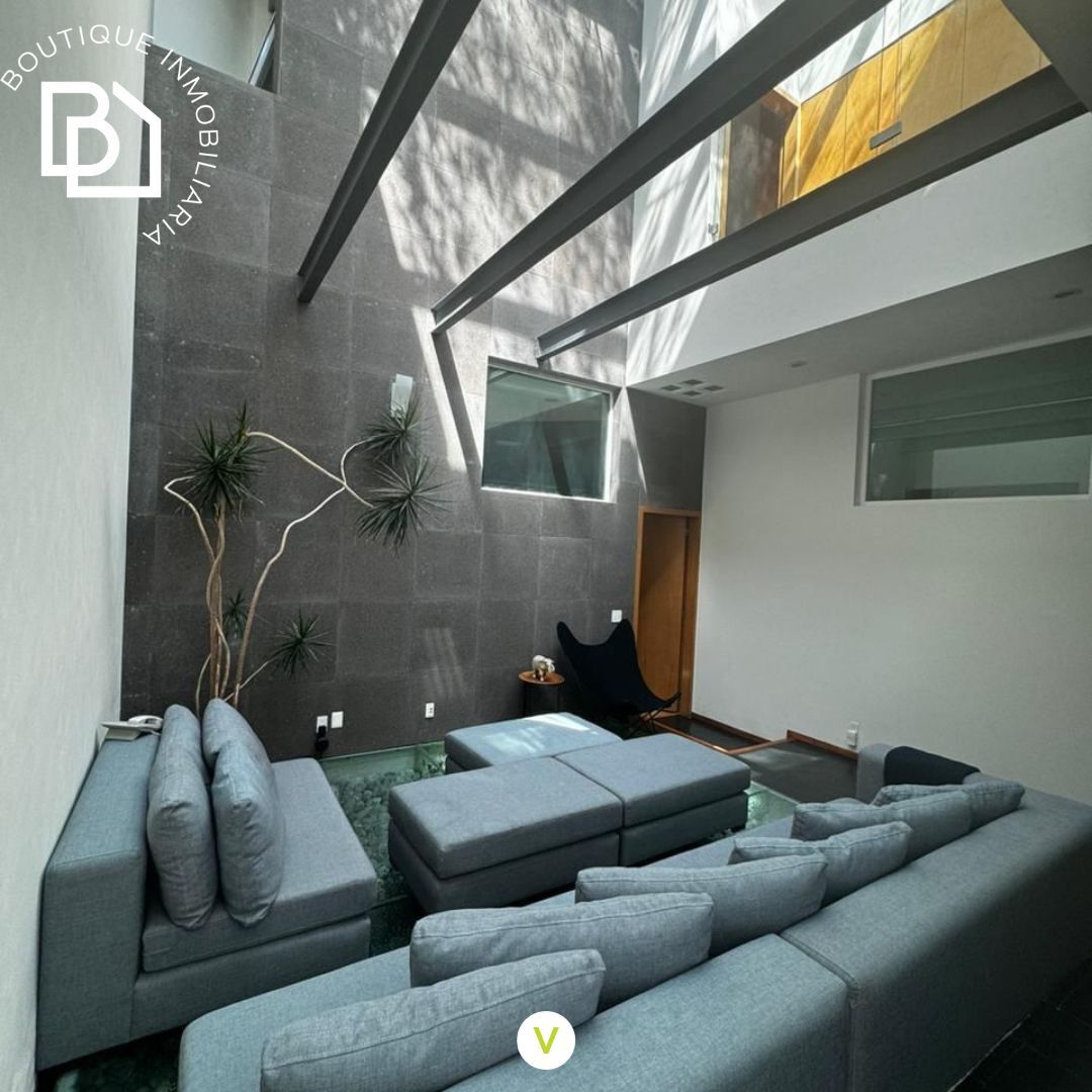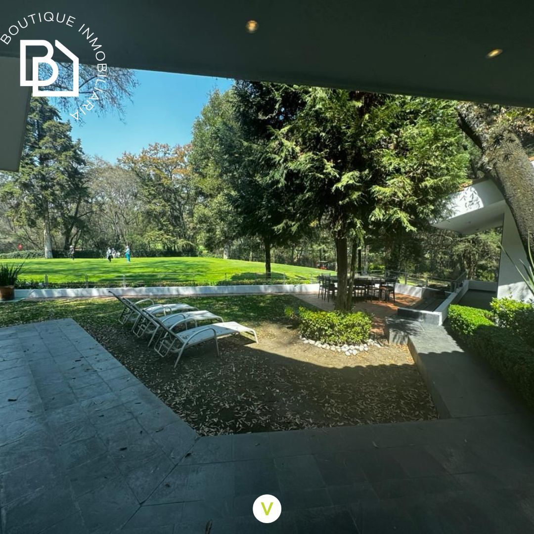 En esta moderna propiedad tendrás todo lo que necesitas para vivir una vida llena de lujo y estilo, iniciamos con el recibidor con excelente vista, estudio y ½ baño, 1er recámara de visitas con baño y vestidor, área de bar, sala y comedor con vista a su increíble jardín con sistema de riego ya incluido que rodea toda la propiedad, cocina totalmente equipada con desayunador, 4 recámaras con baño completo y vestidor, la recámara principal cuenta con walking closet, jacuzzi y área de vapor, departamento independiente de 2 niveles con sala y baño, 2da área de bar independiente, garaje para 10 autos, garaje techado para 2 carritos de golf, cuarto de servicio con baño completo, área de lavado, cuarto de choferes.
