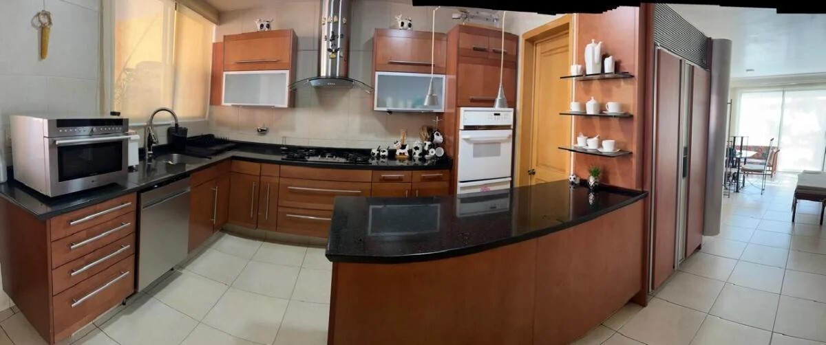 Cocina equipada (refrigerador, lavavajillas), antecomedor y alacena.