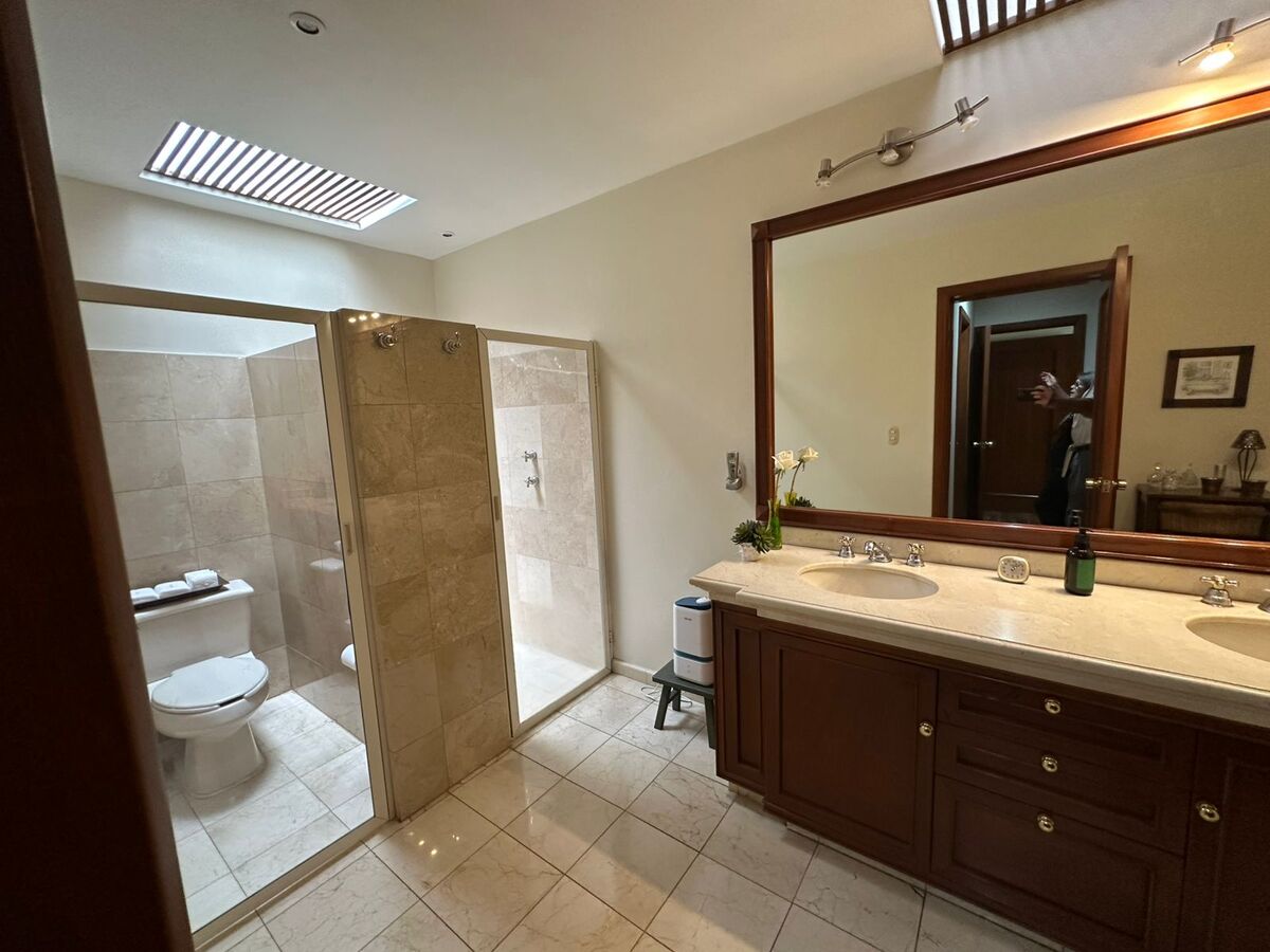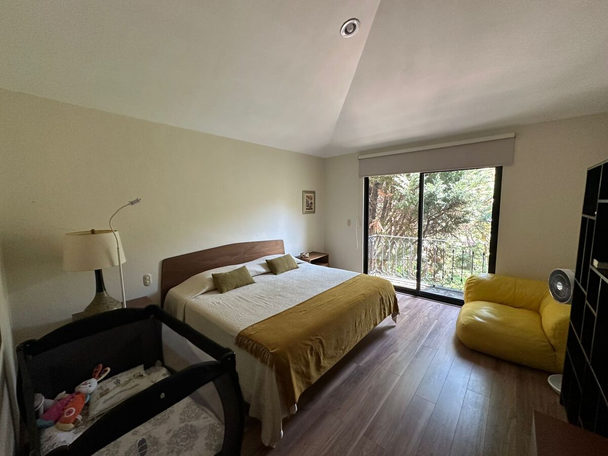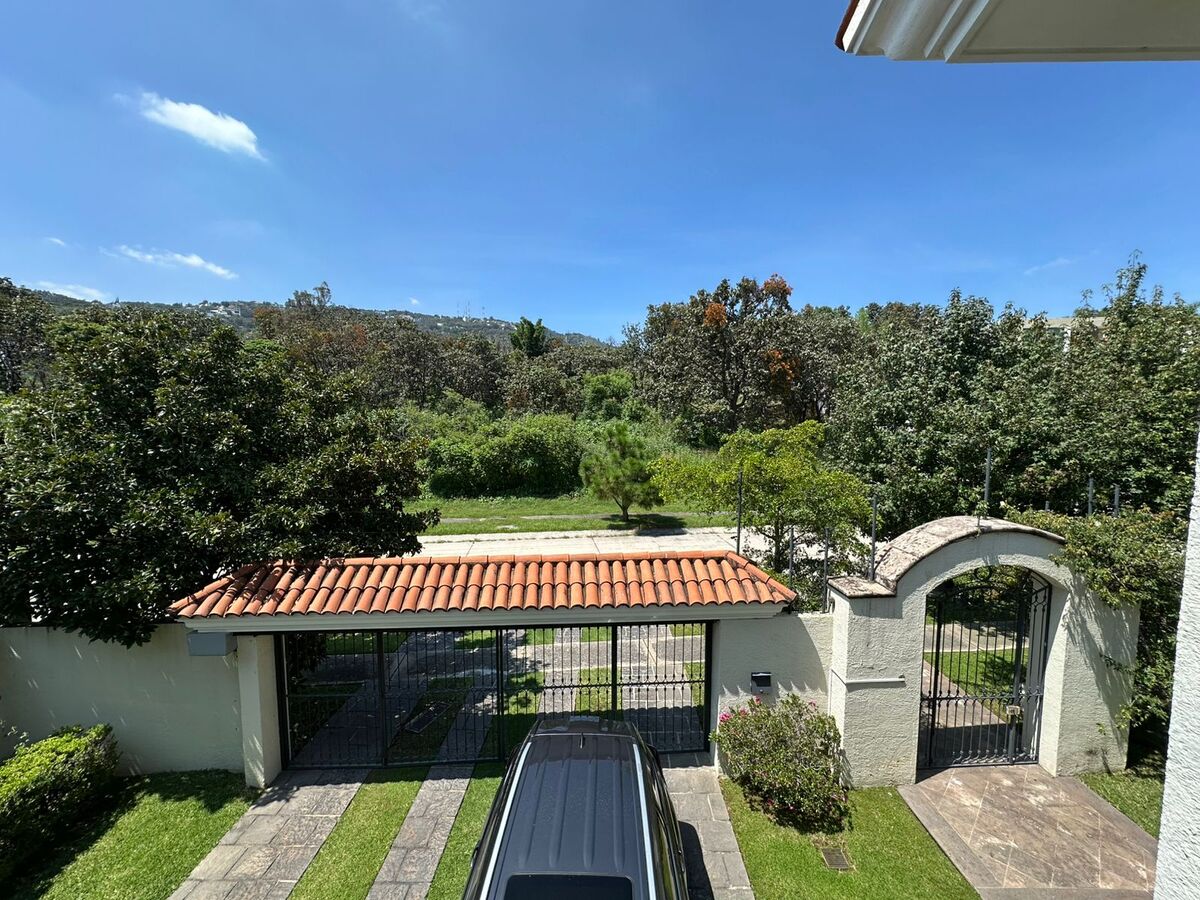 Amplísimo Jardín de 600 mt2, antecomedor, cochera para cuatro autos, portón eléctrico, paneles solares instalados recientemente, cuatro recámaras todas con vestidor y baño, mucha vegetación e increíbles vistas.