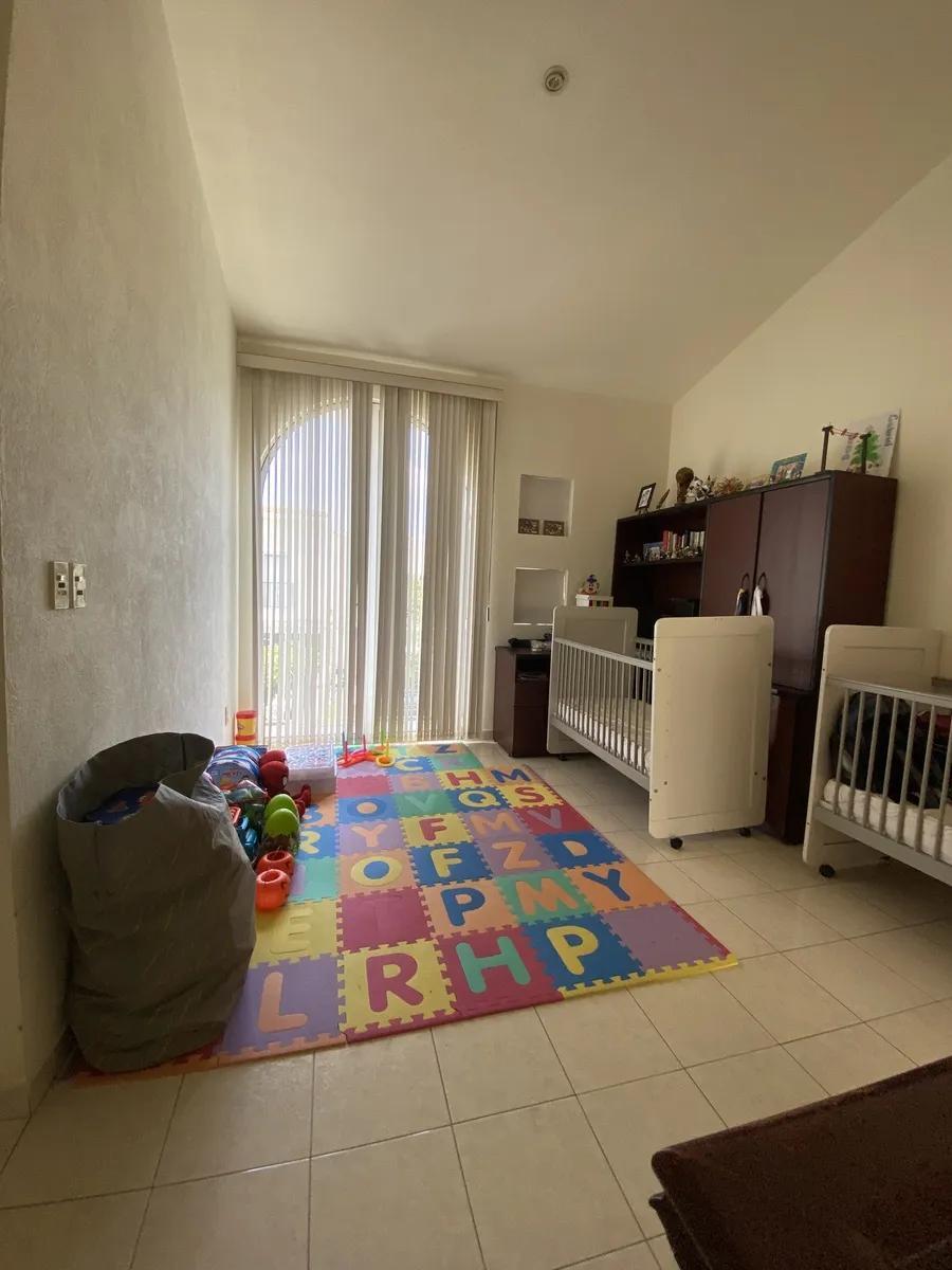Sala de TV, recámara principal con vestidor y baño, dos recámaras secundarias, cada una con clóset y baño completo.