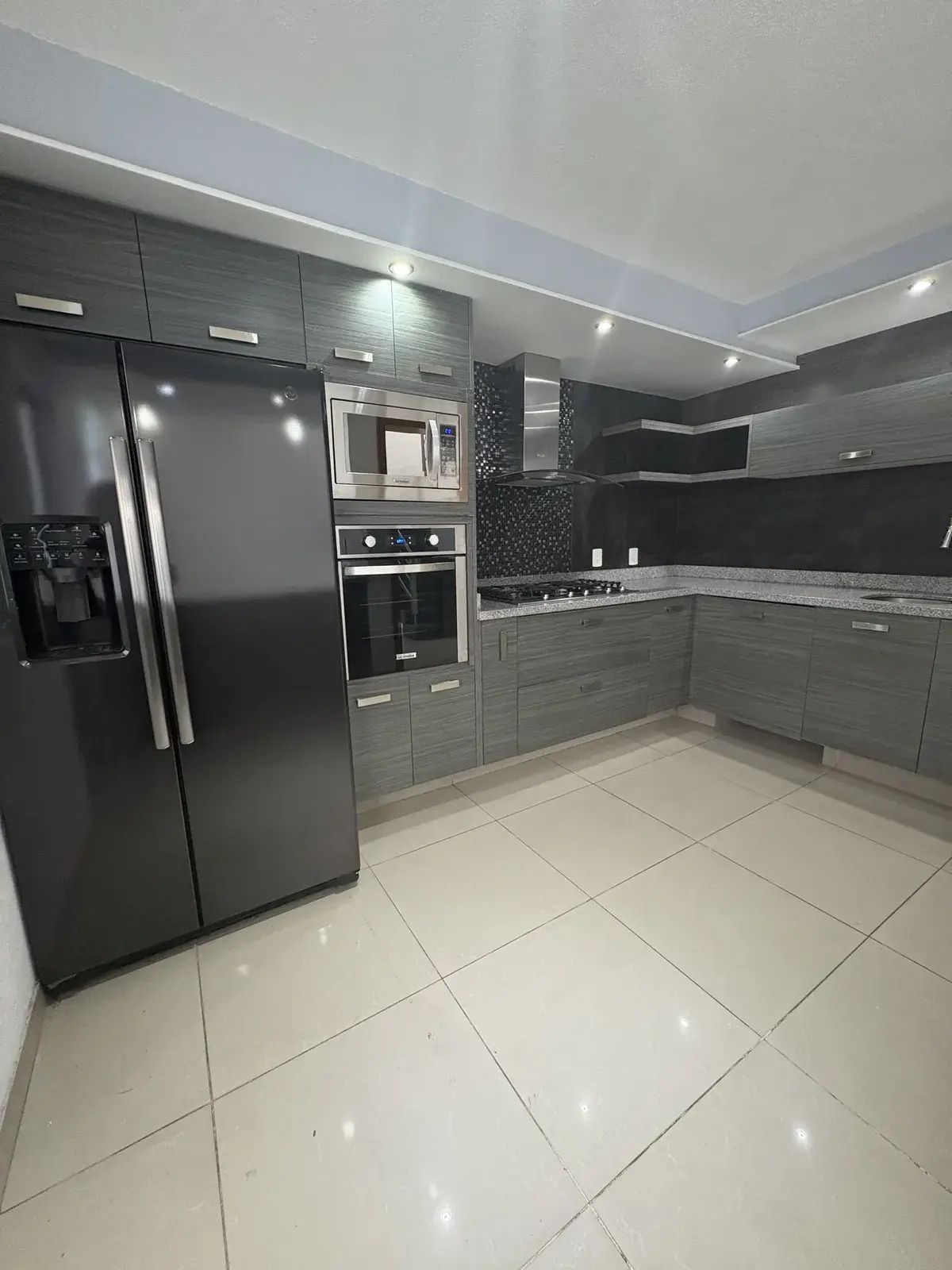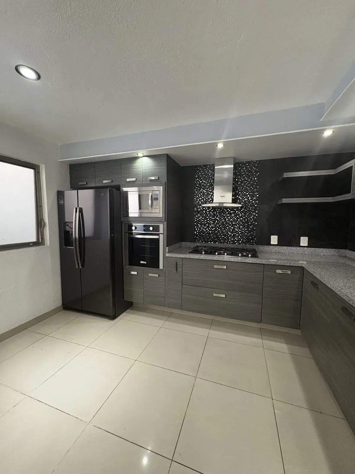 La planta baja cuenta una sala acogedora y de buen espacio , el área de comedor con una impresionante doble altura , una hermosa cocina equipada con hornos, refrigerador y parrilla.El área de lavado techada y con espacio de terraza para tus reuniones.
