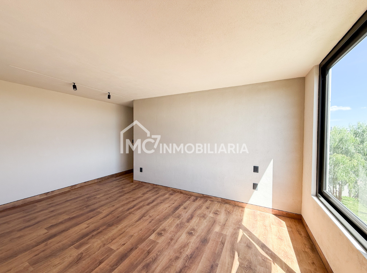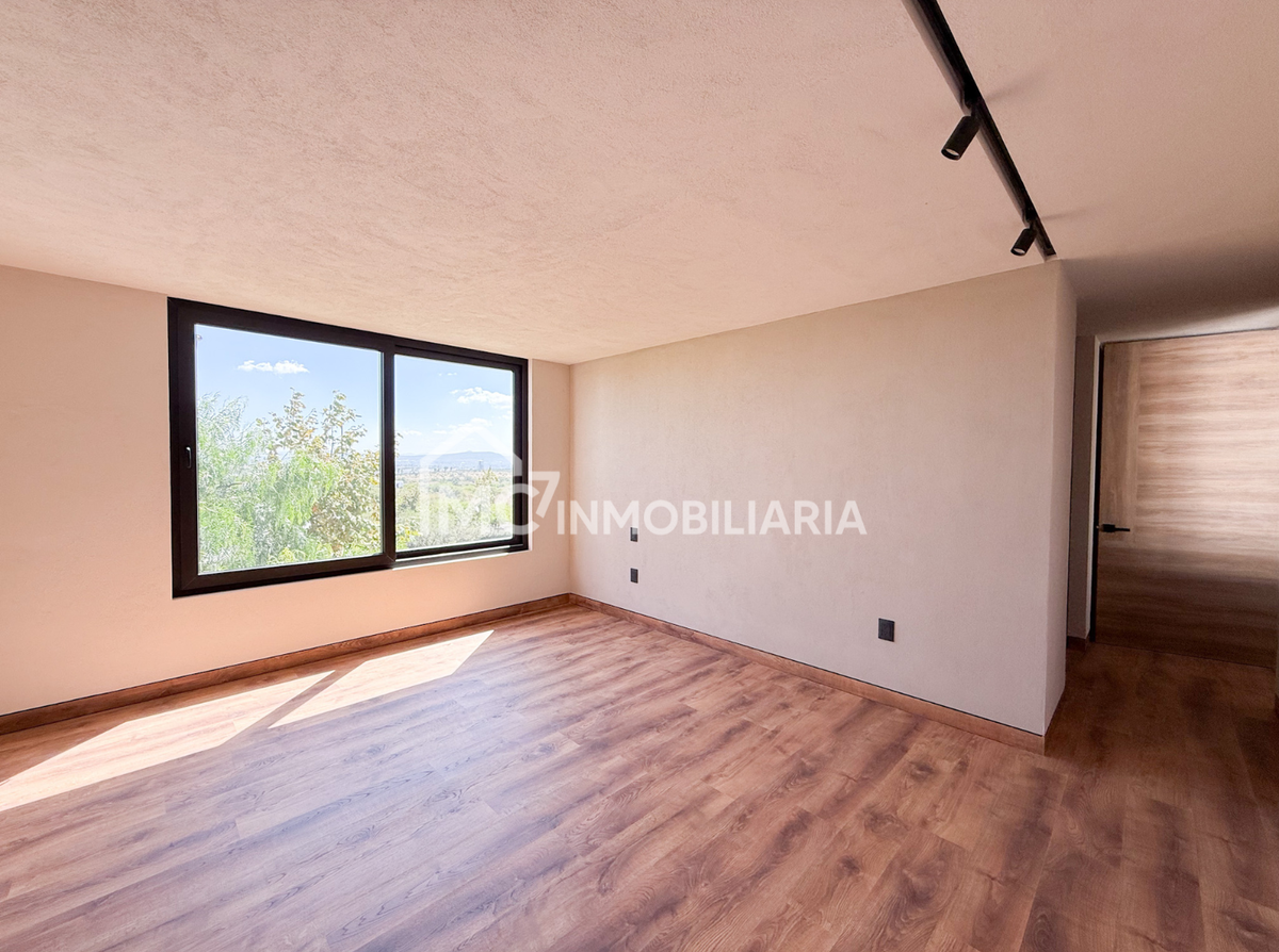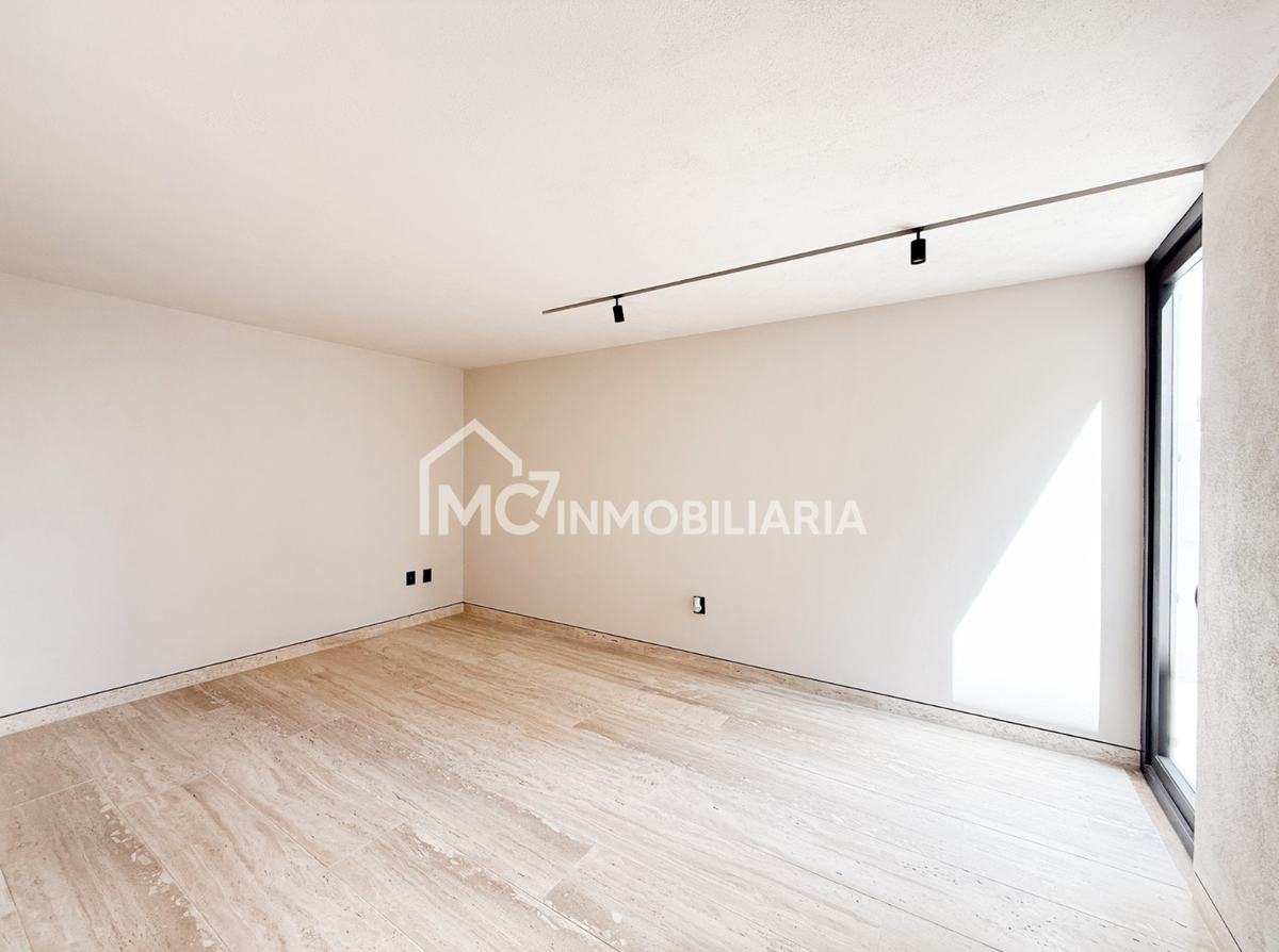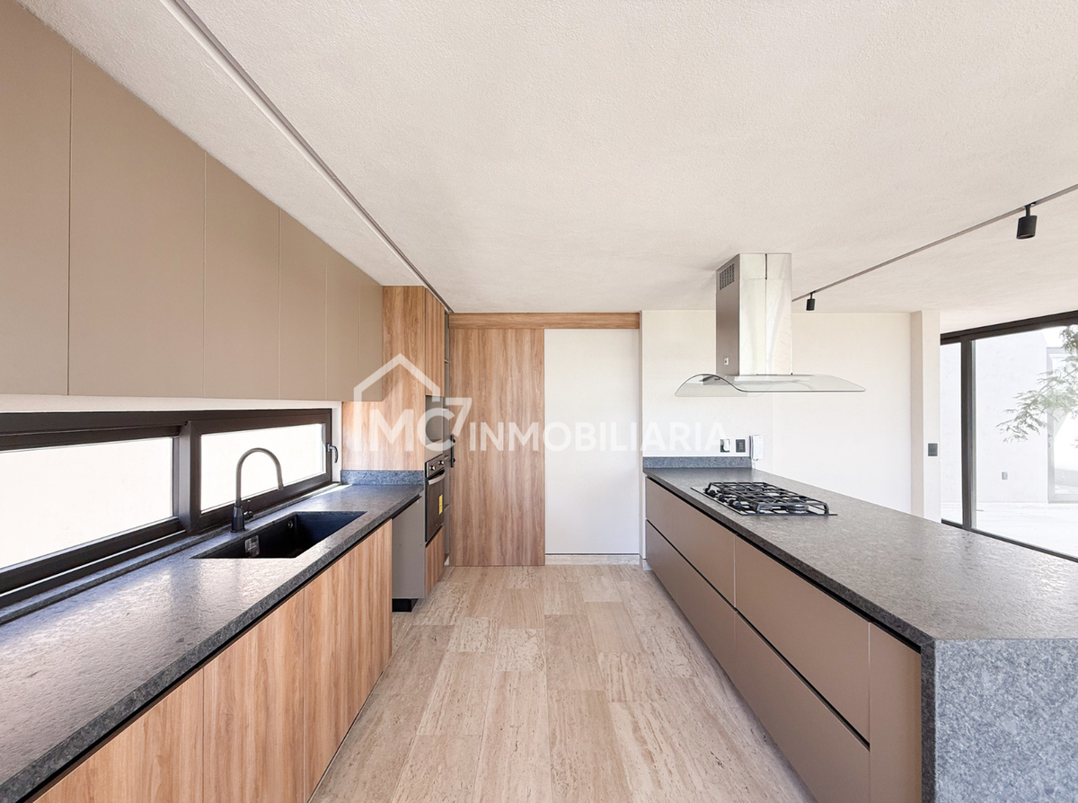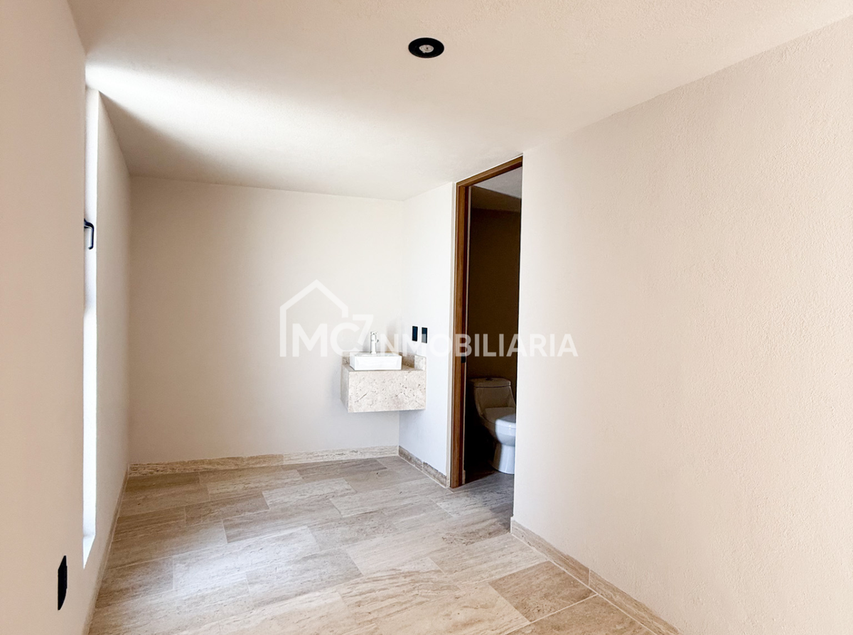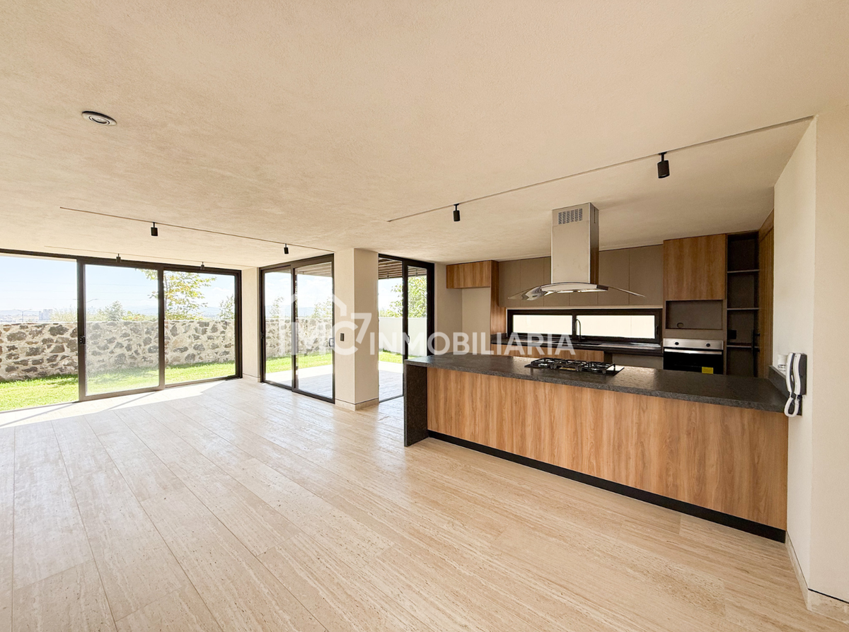 La casa cuenta con 3 recámaras con opción a 4, imponente doble altura que integra a la sala, cocina y comedor con un amplio jardín, terraza techada y jardín central que genera una inigualable iluminación natural.