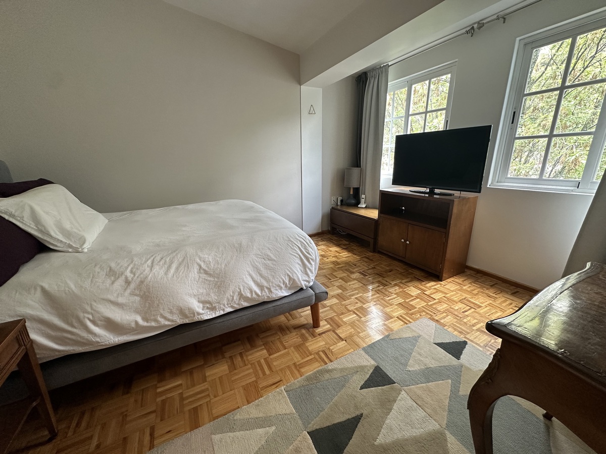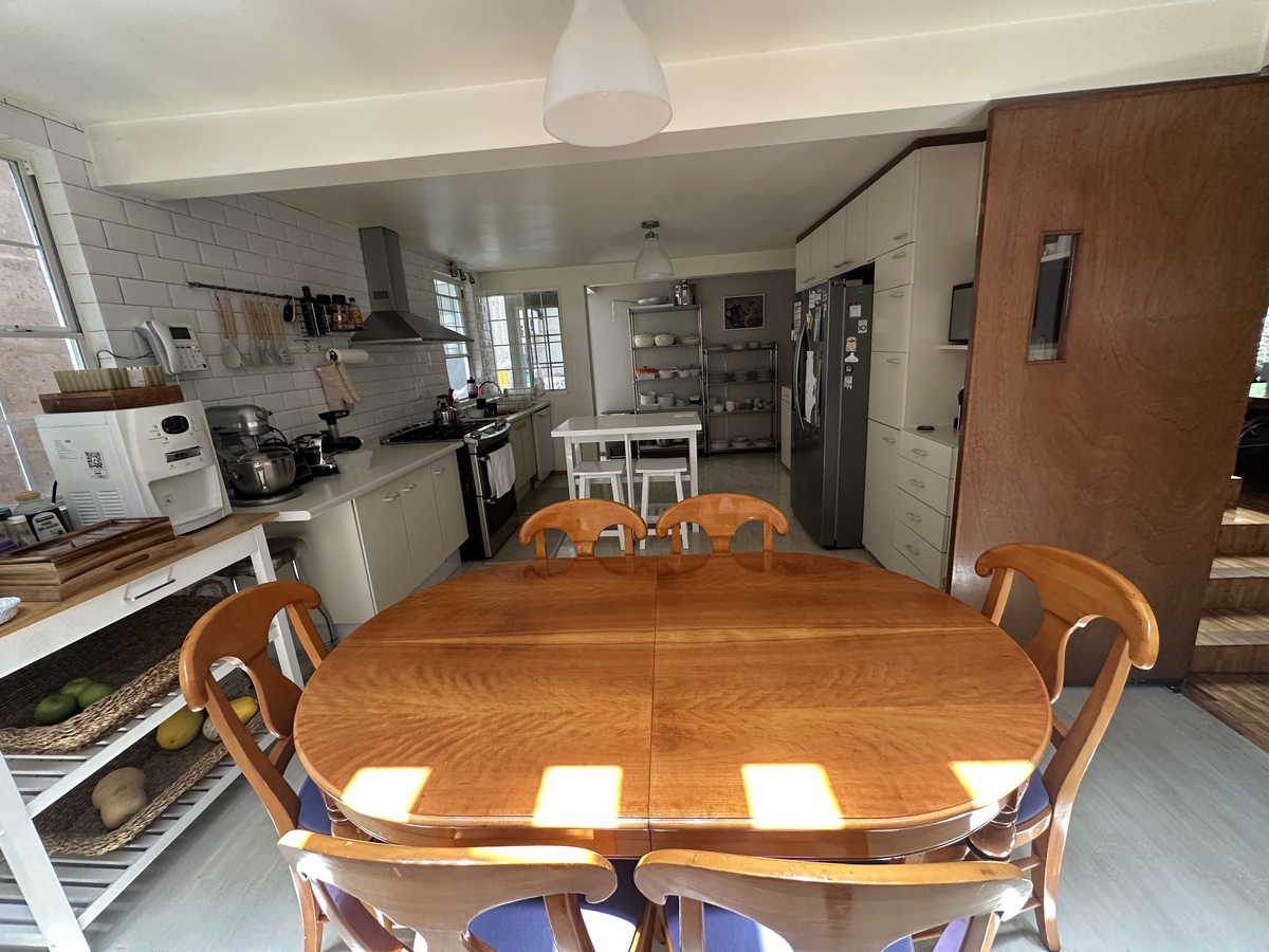 Distribuida en dos pisos, es una casa muy iluminada, con bonitas vistas verdes, amplios y cómodos espacios, con pisos de madera.