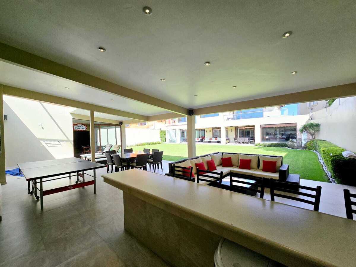HERMOSO JARDÍN QUE CONECTA CON EL ÁREA SOCIAL DISEÑADA PARA HACER REUNIONES, GRANDES FIESTAS O INVITAR A LOS AMIGOS A VER ALGUNA PELÍCULA O PARTIDO EN LA SALA DE CINE CON 8 ASIENTOS DE PIEL Y SALA DE PROYECCIÓN, GRAN TERRAZA AL AIRE LIBRE Y TECHADA CUENTA CON JACUZZI, ÁREA DE CAMASTROS, SALA LOUNGE, COCINA, ÁREA DE BBQ Y UN SALÓN DE JUEGOS.