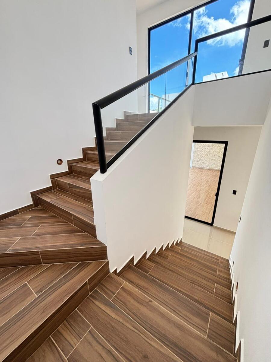Detalles: Granito negro en cocina, Mármol Santo Tomás en baños y piso antiderrapante tipo madera en terrazas y escalera.