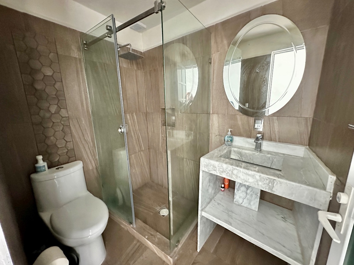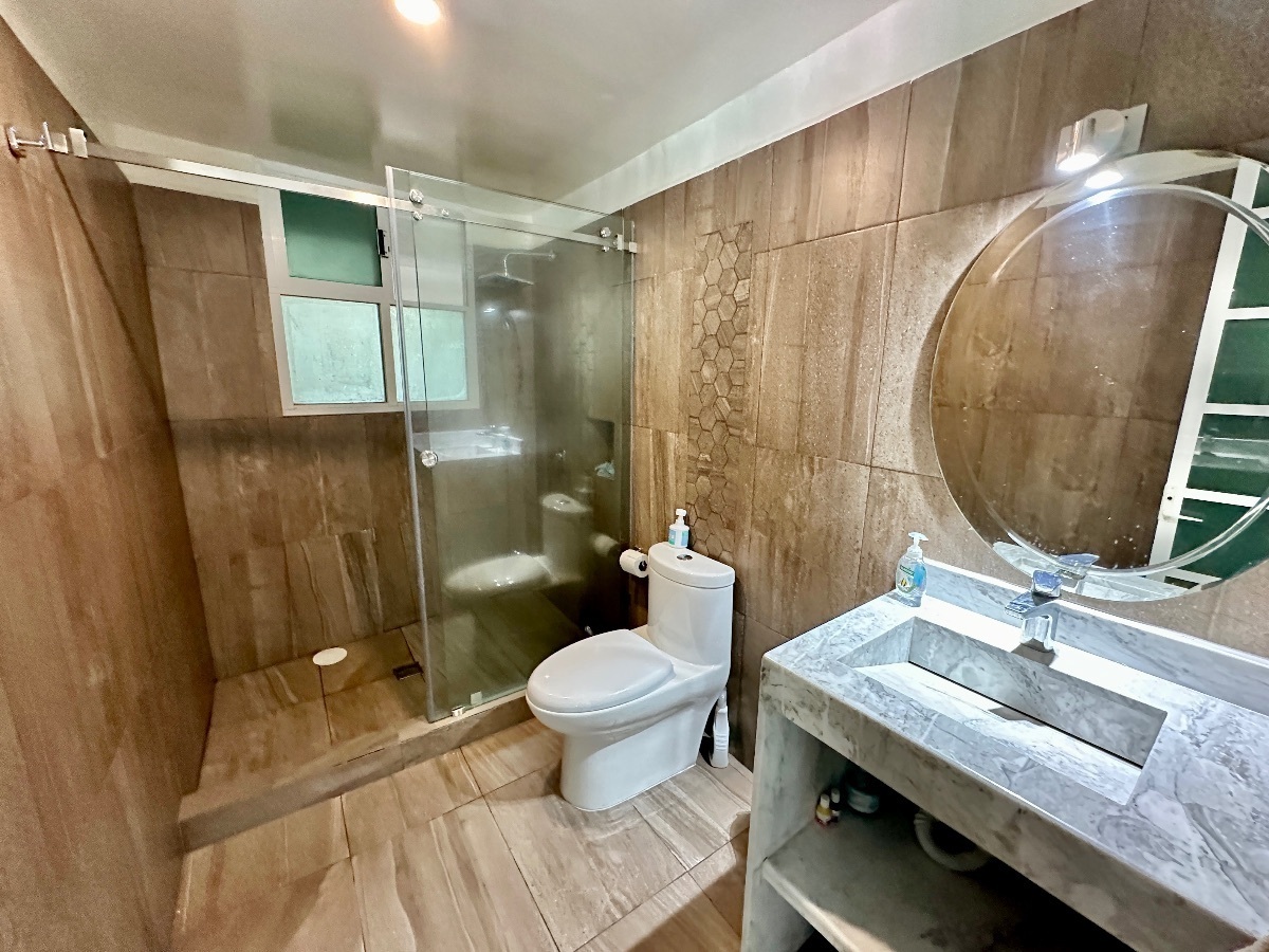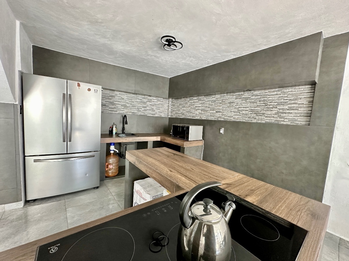 La cocina está completamente equipada, con todos lo necesario y armarios de almacenamiento suficientes para que puedas preparar tus platillos favoritos con facilidad. Además, cuenta con un baño auxiliar y un baño en la habitación principal, para mayor comodidad.