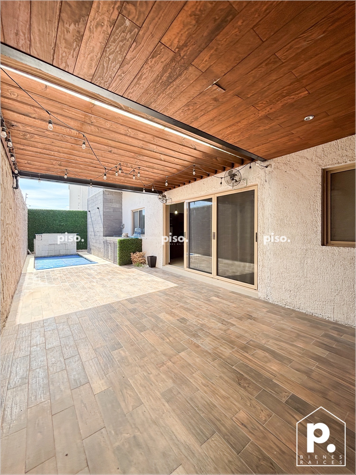 -Patio con terraza, barra, área de asador y alberca. (equipada)