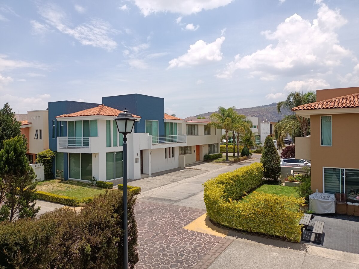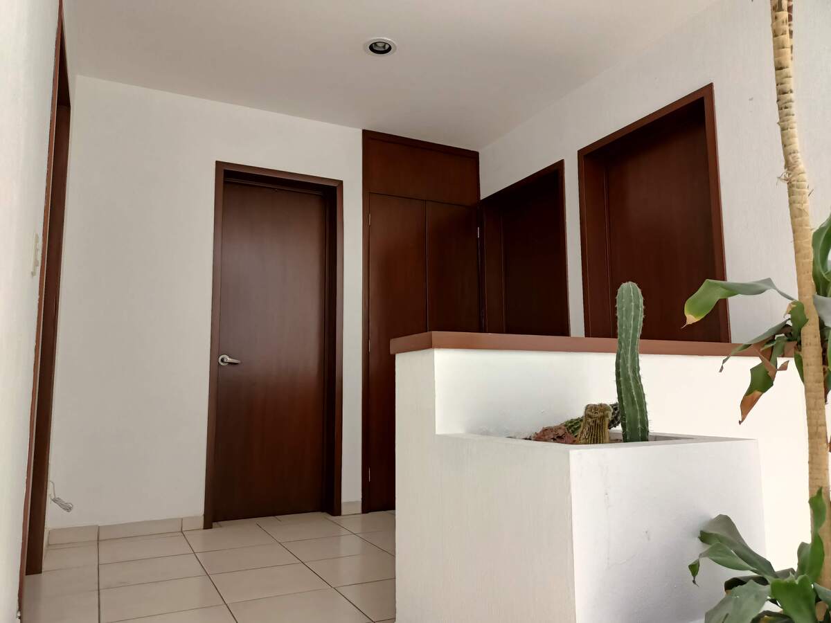 La recamara principal tiene baño completo y vestidor, doble altura y un balcón