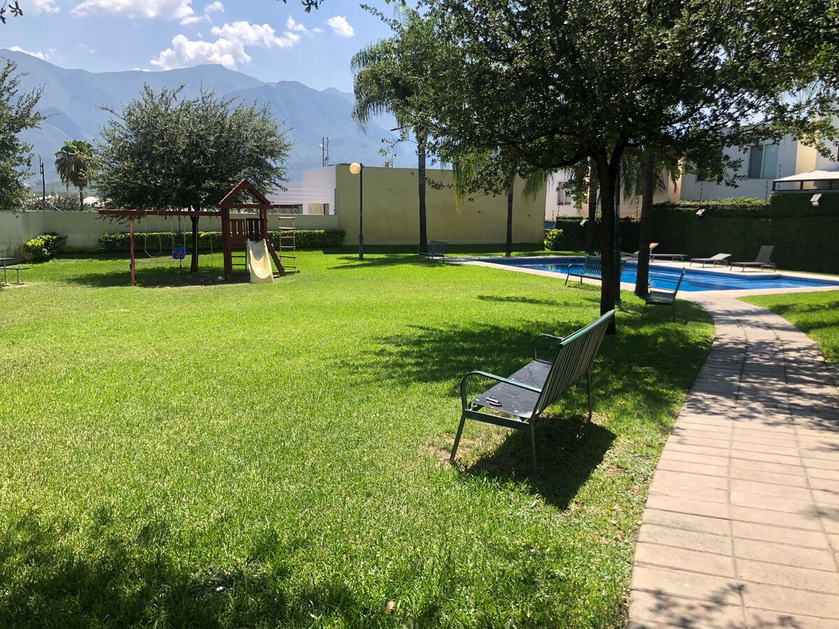 Casa en venta de tres niveles en Fraccionamiento privado vigilancia 24/7, en la Carretera Nacional, cuenta la privada con área de juegos, asadores y alberca.
